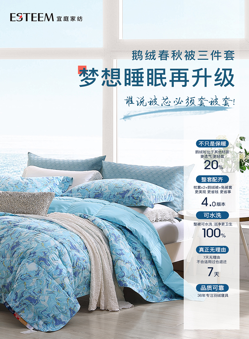 琥珀海岸可水洗鹅绒春秋/夏被三件套