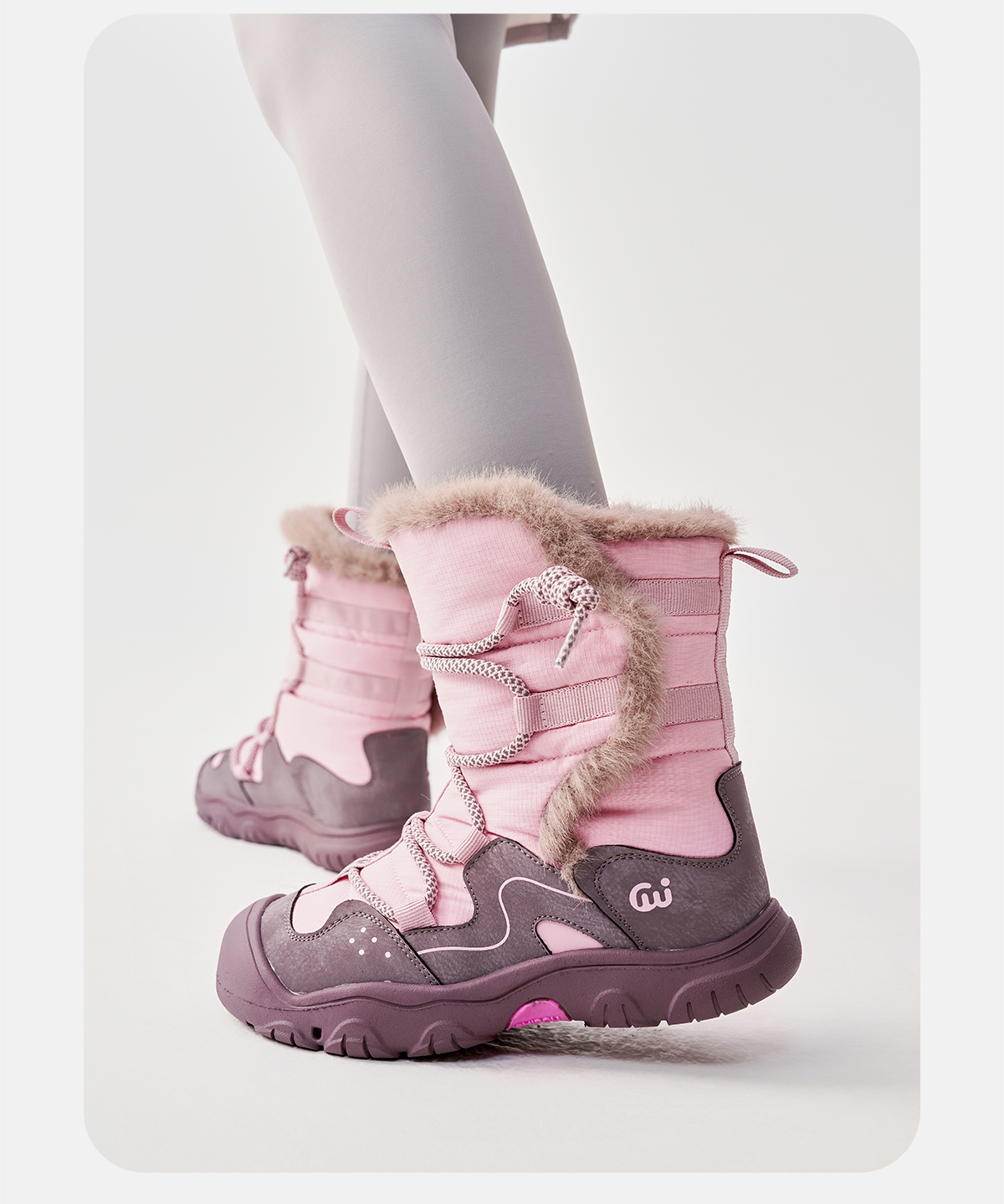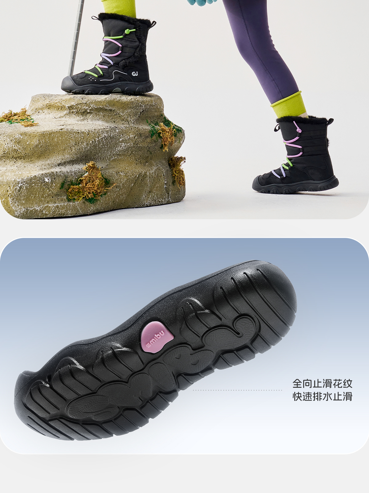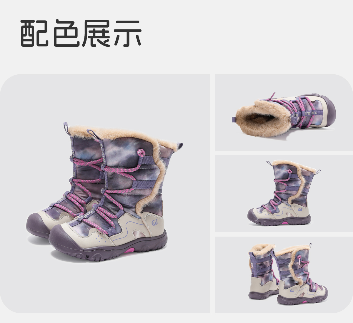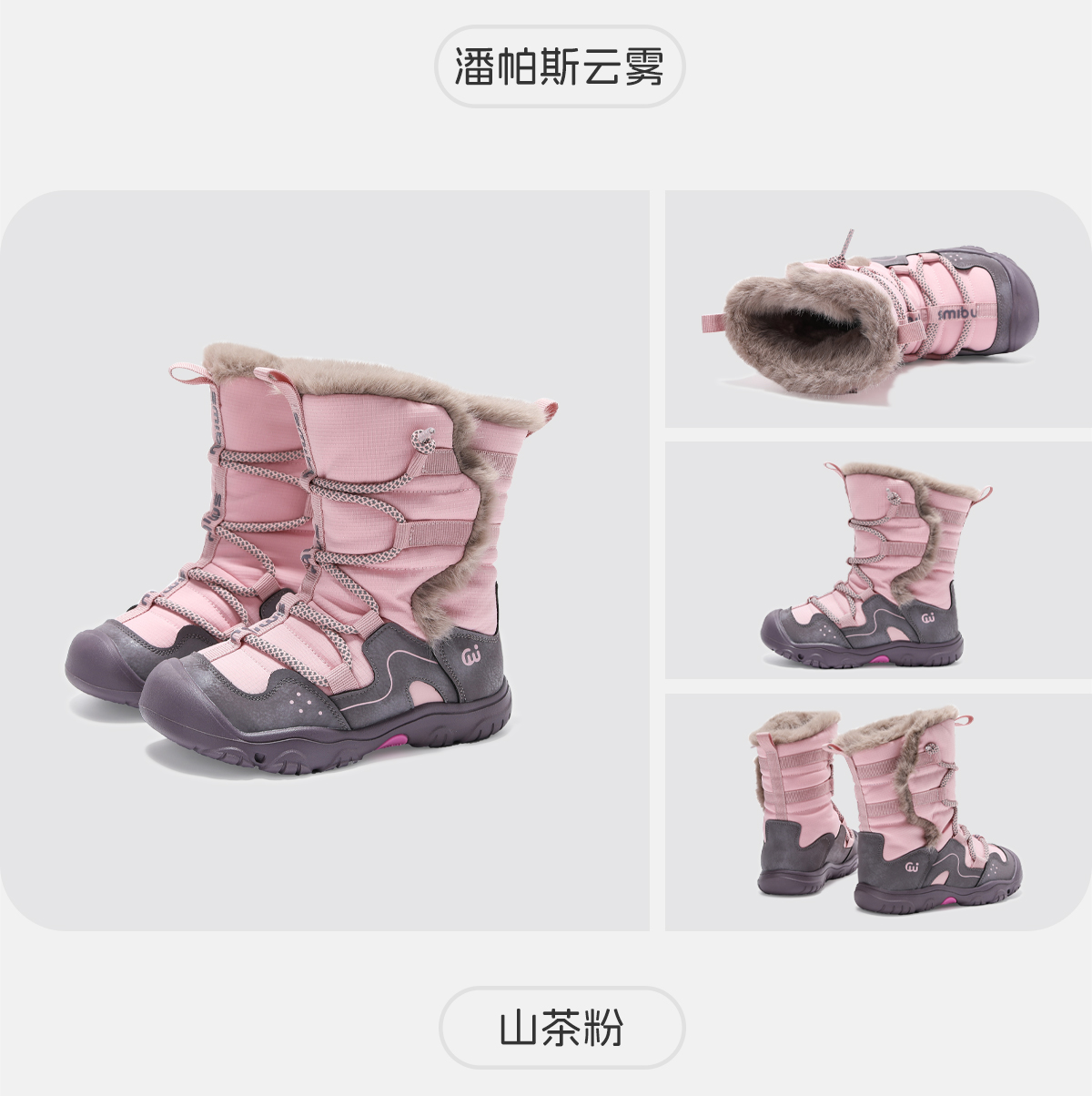 *SMIBU儿童2025冬季新款猫爪徒步系列加绒加厚保暖防滑中筒靴雪地靴Z44KB3702