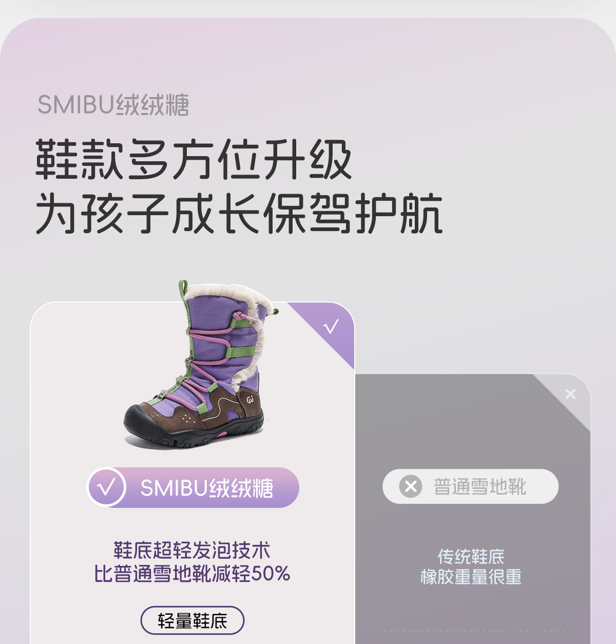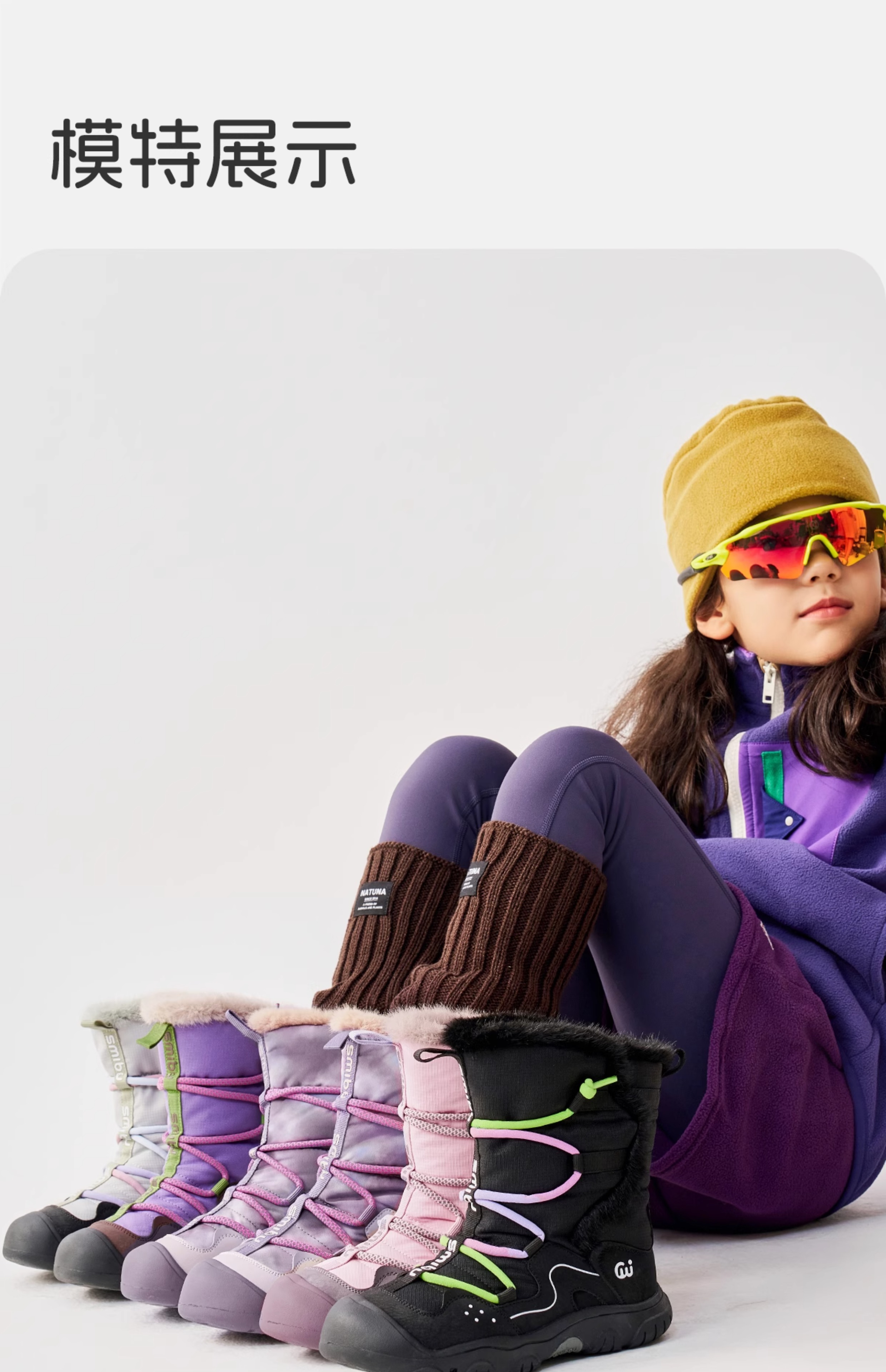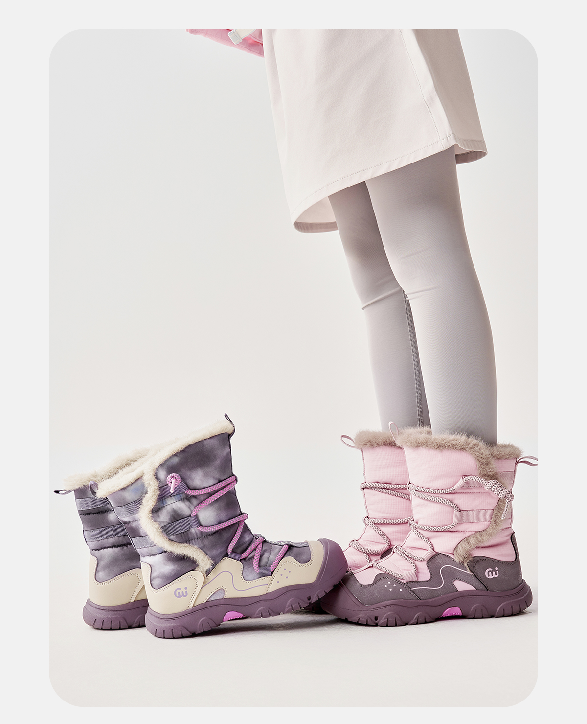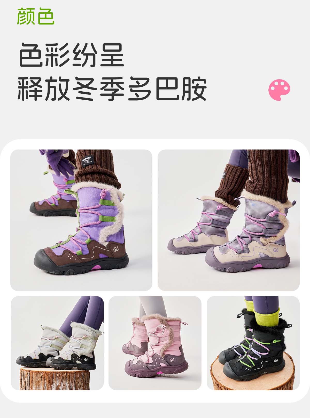 *SMIBU儿童2025冬季新款猫爪徒步系列加绒加厚保暖防滑中筒靴雪地靴Z44KB3702
