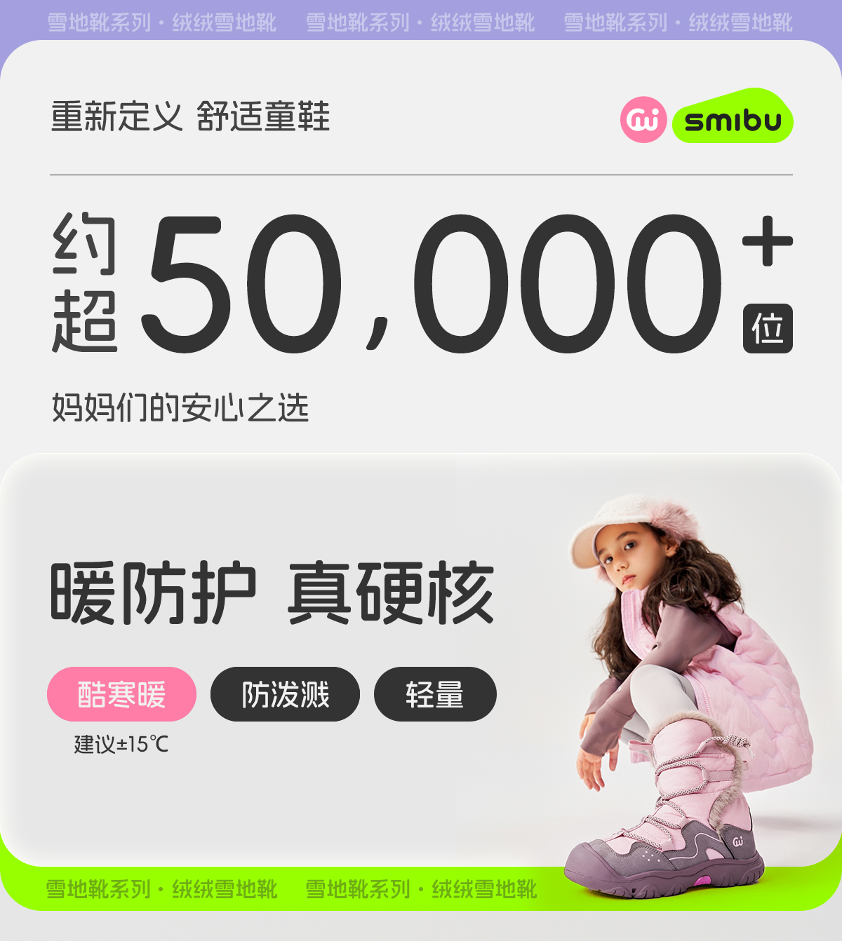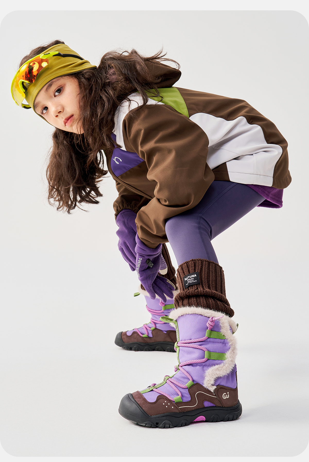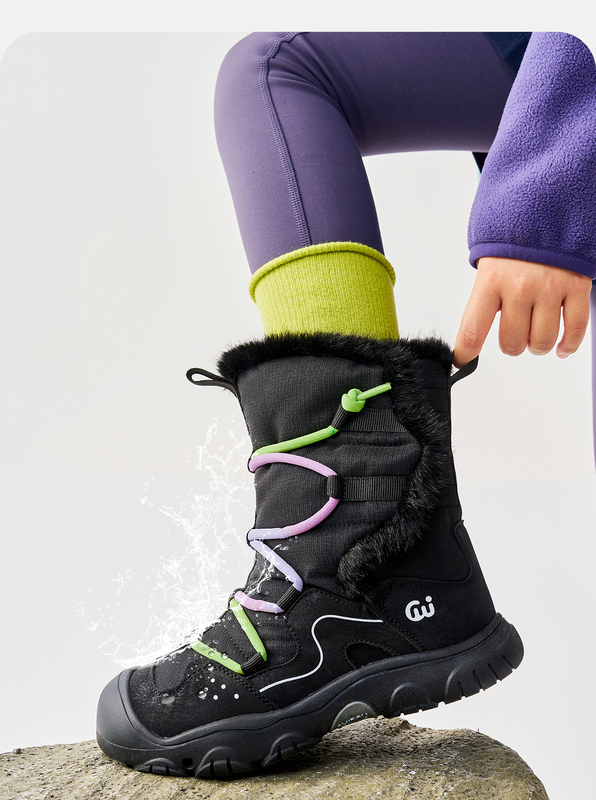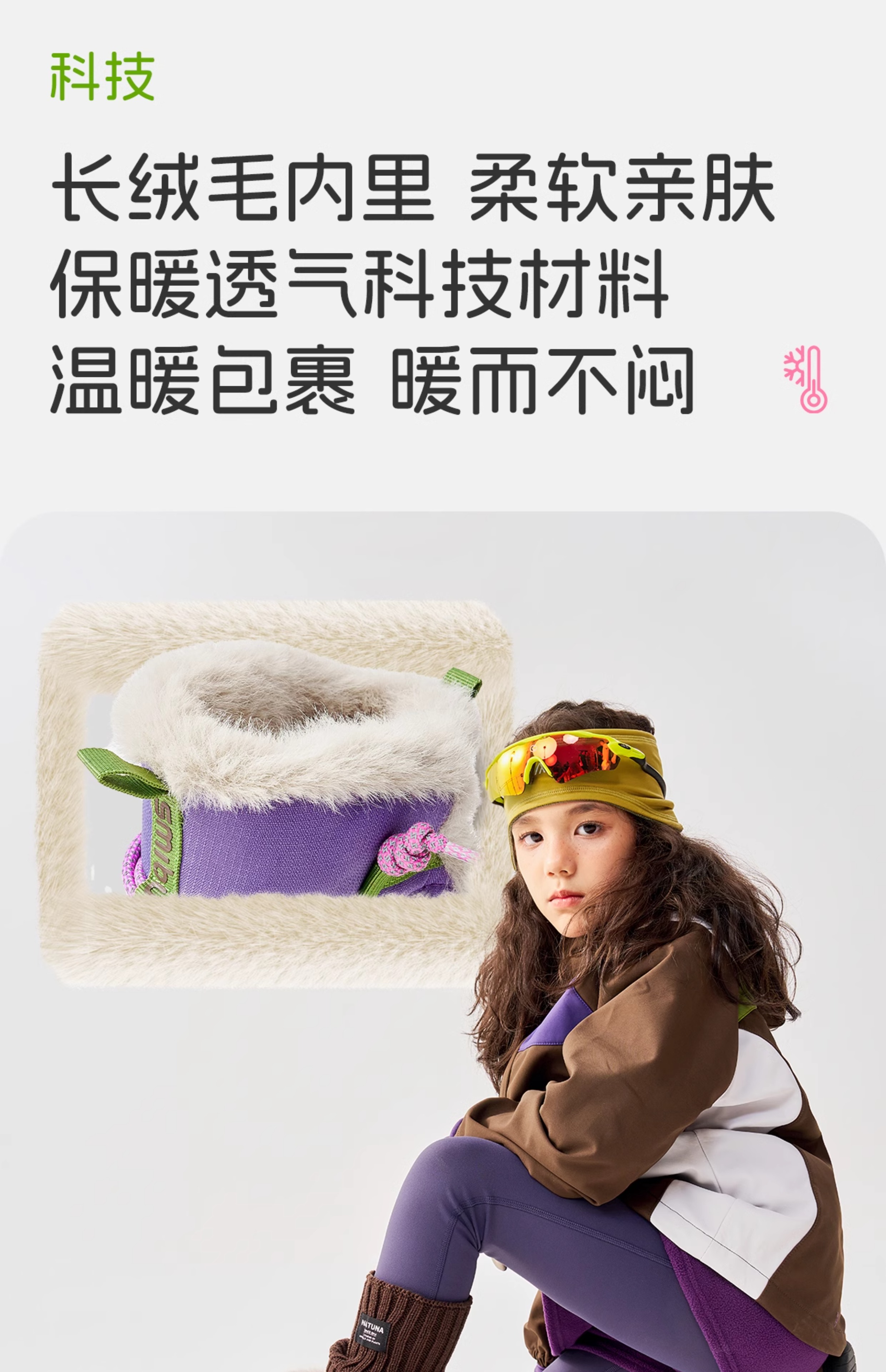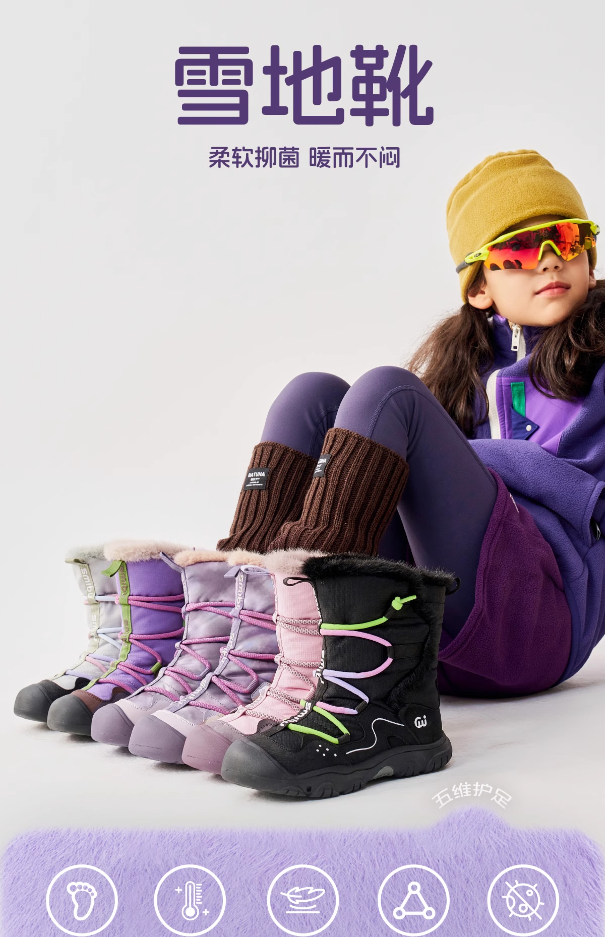*SMIBU儿童2025冬季新款猫爪徒步系列加绒加厚保暖防滑中筒靴雪地靴Z44KB3702