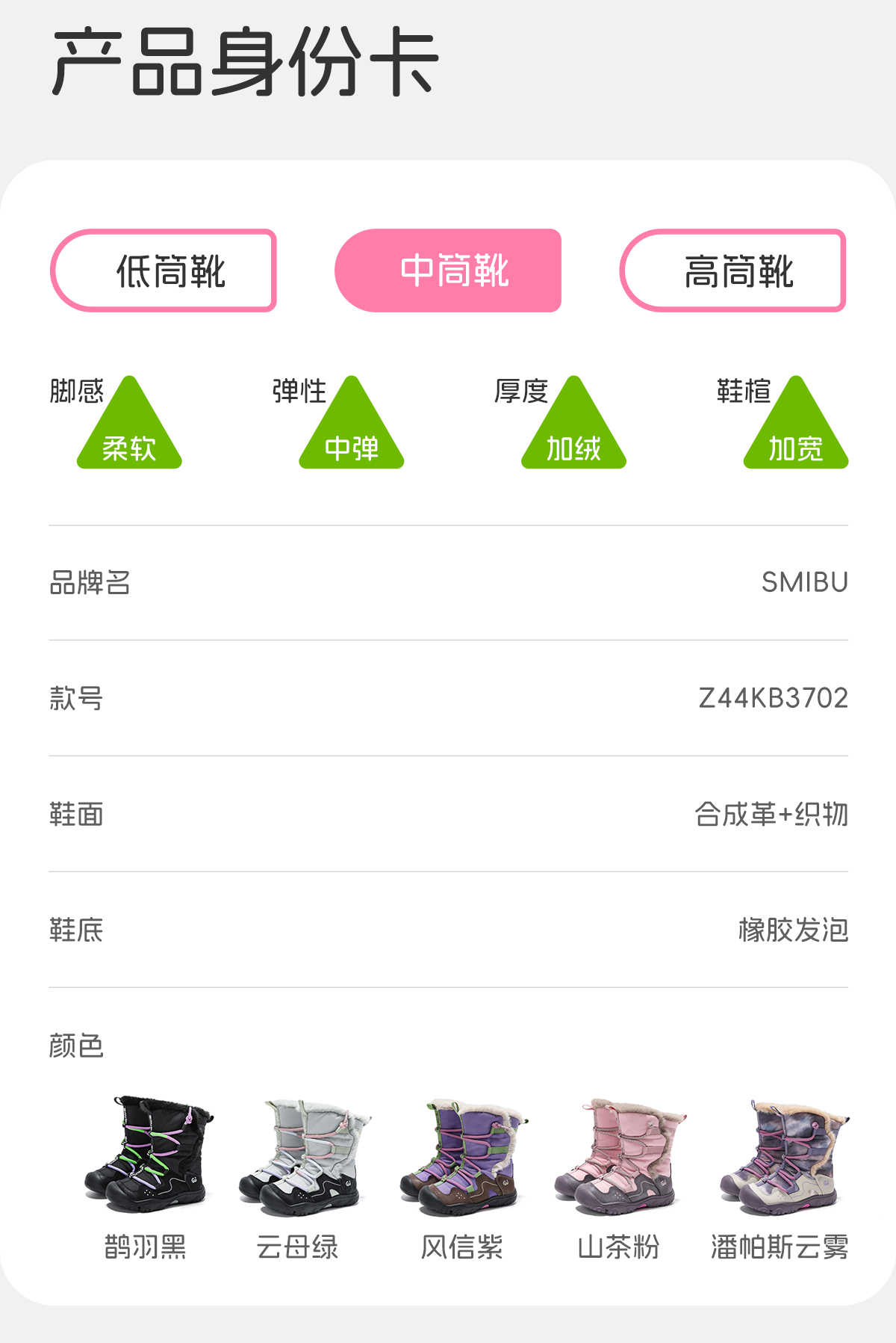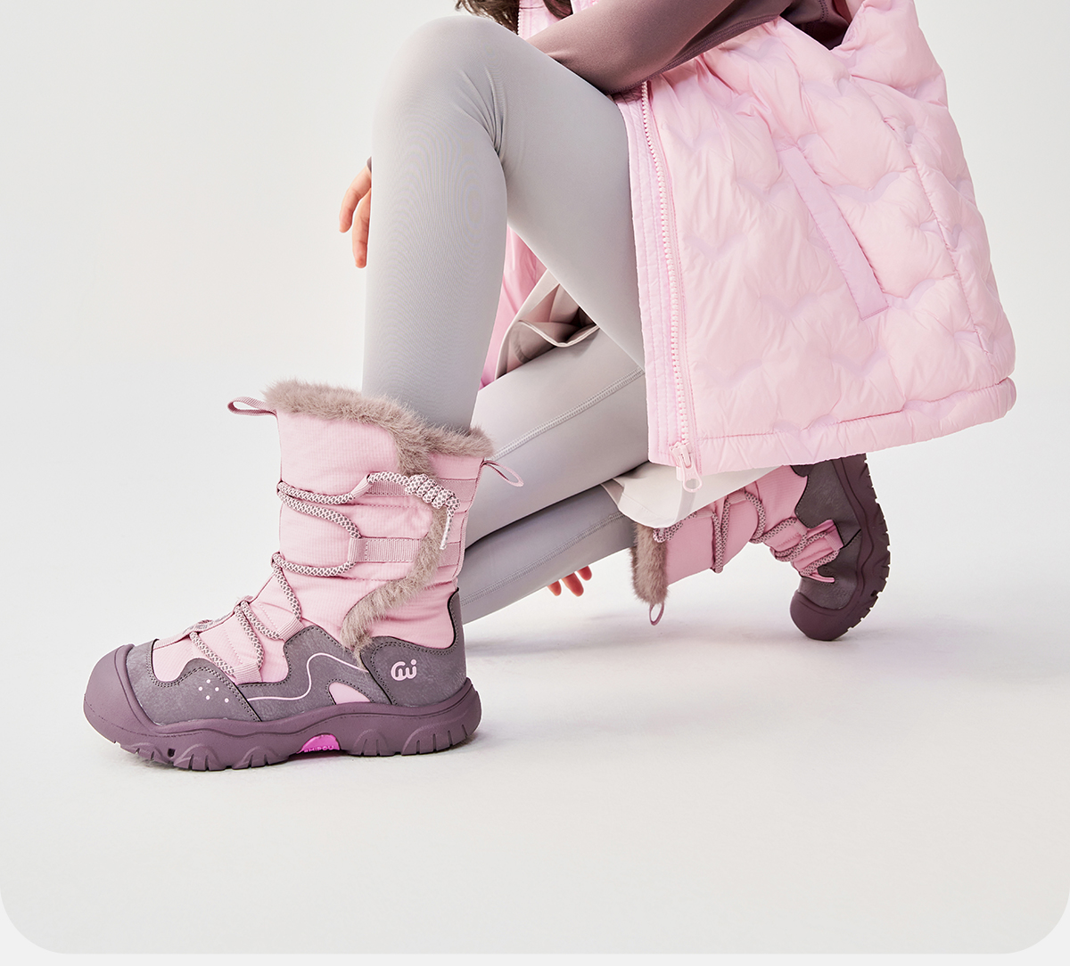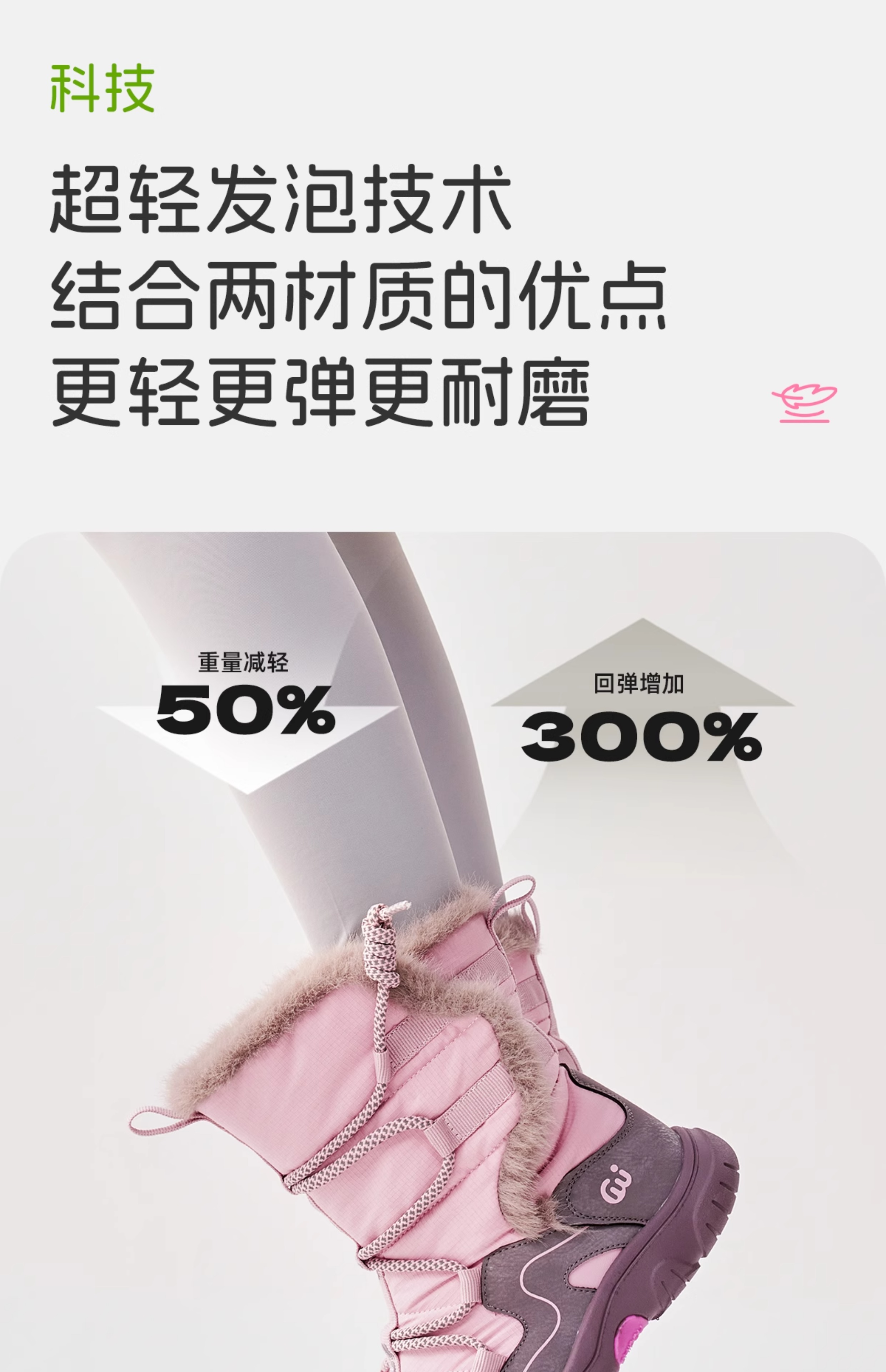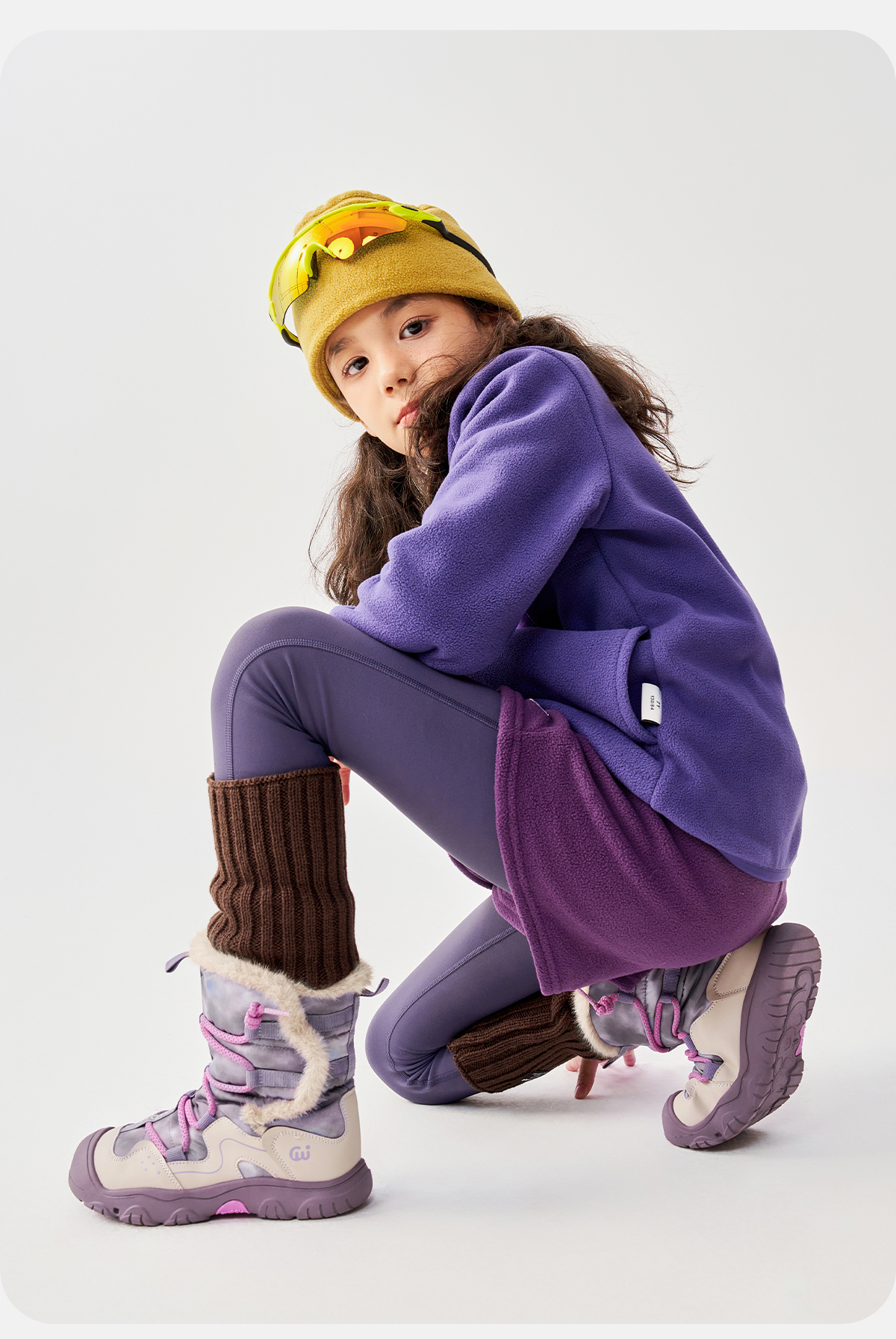 *SMIBU儿童2025冬季新款猫爪徒步系列加绒加厚保暖防滑中筒靴雪地靴Z44KB3702