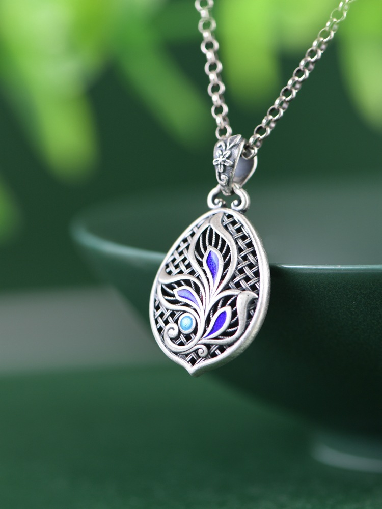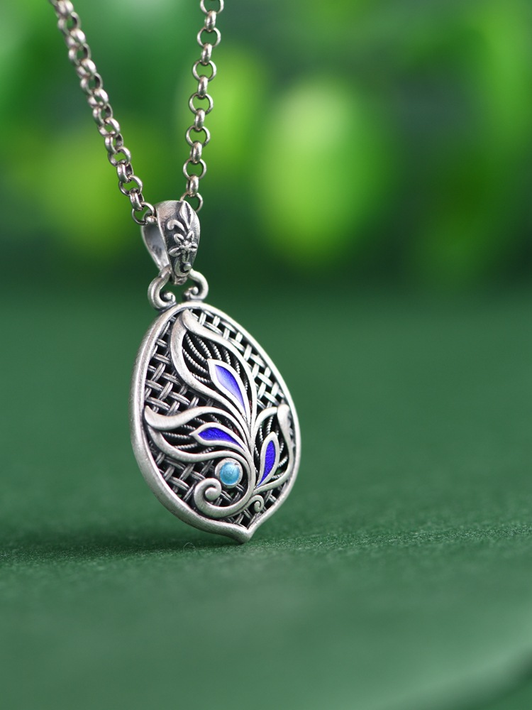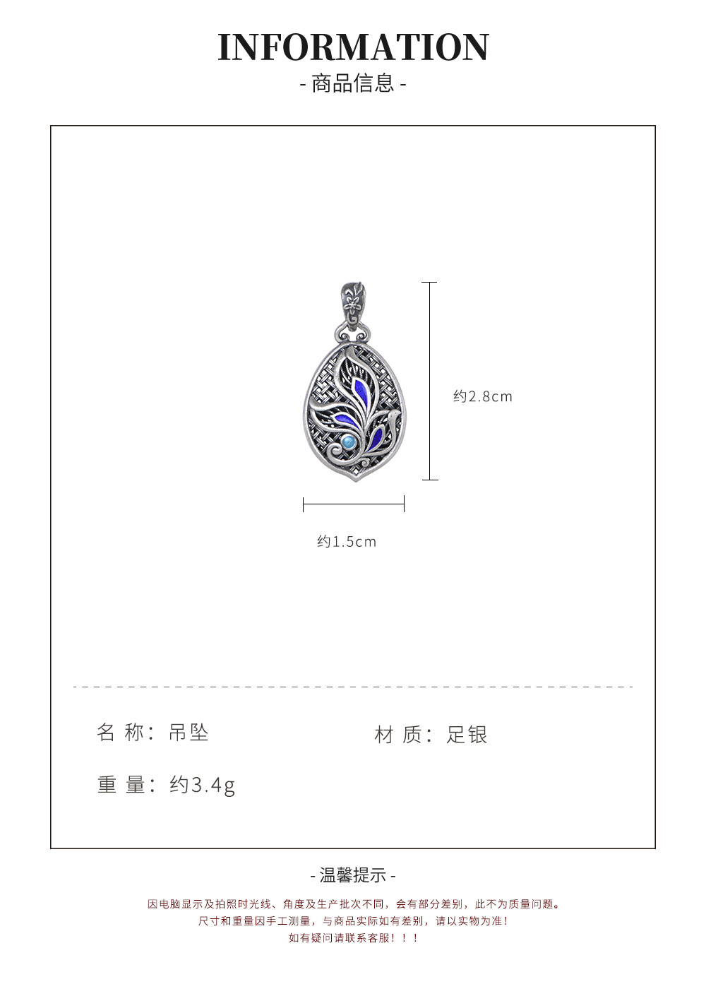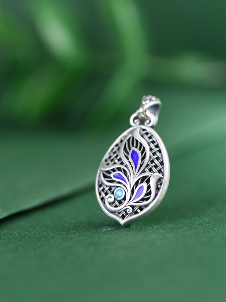 【凤羽】足银水滴编织纹复古珐琅景泰蓝凤凰羽毛吊坠【SCH-SY17547】