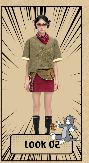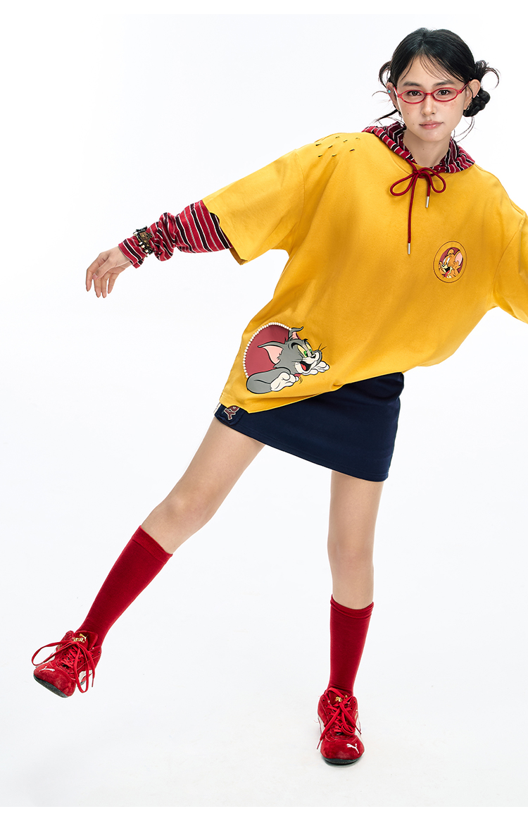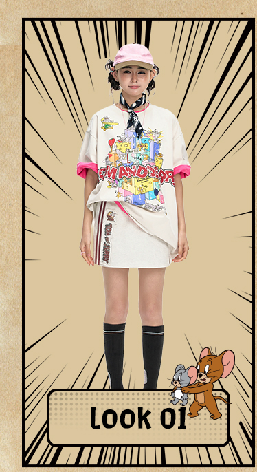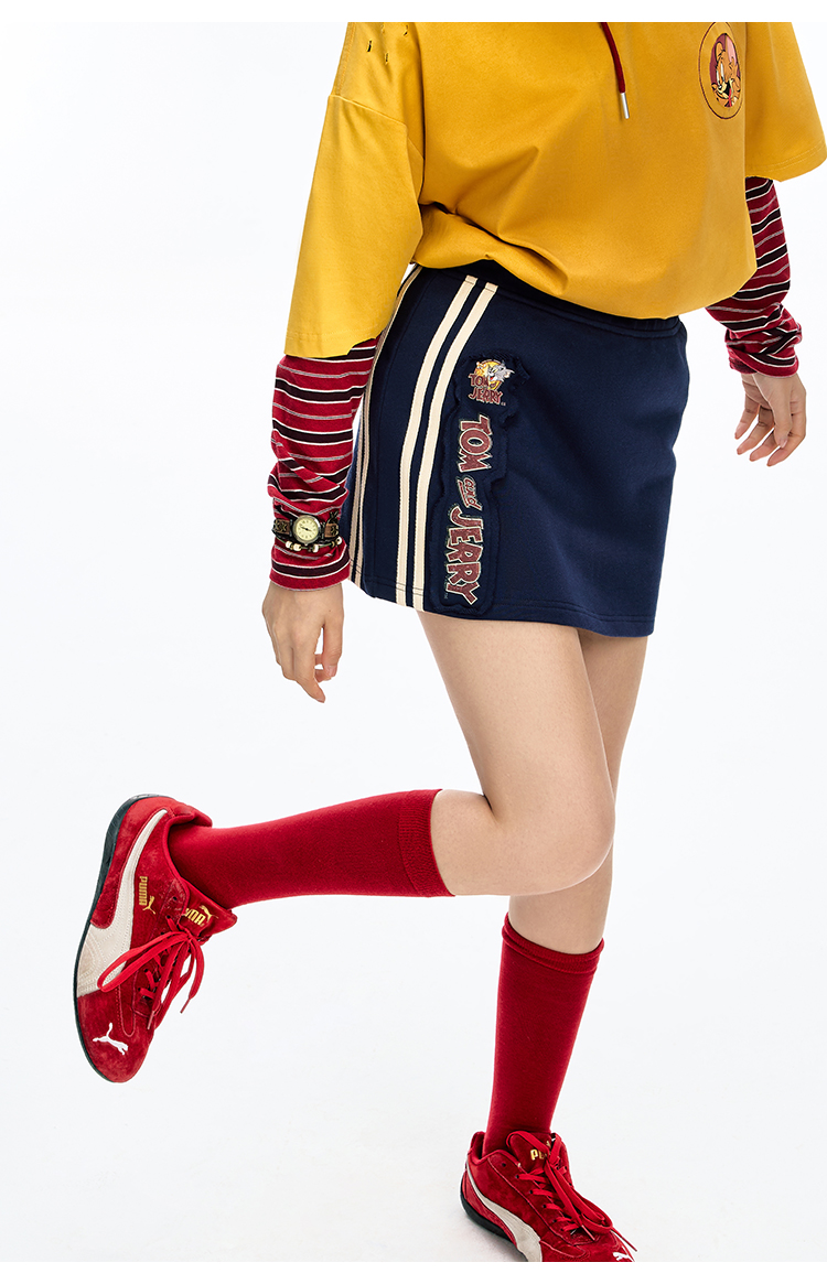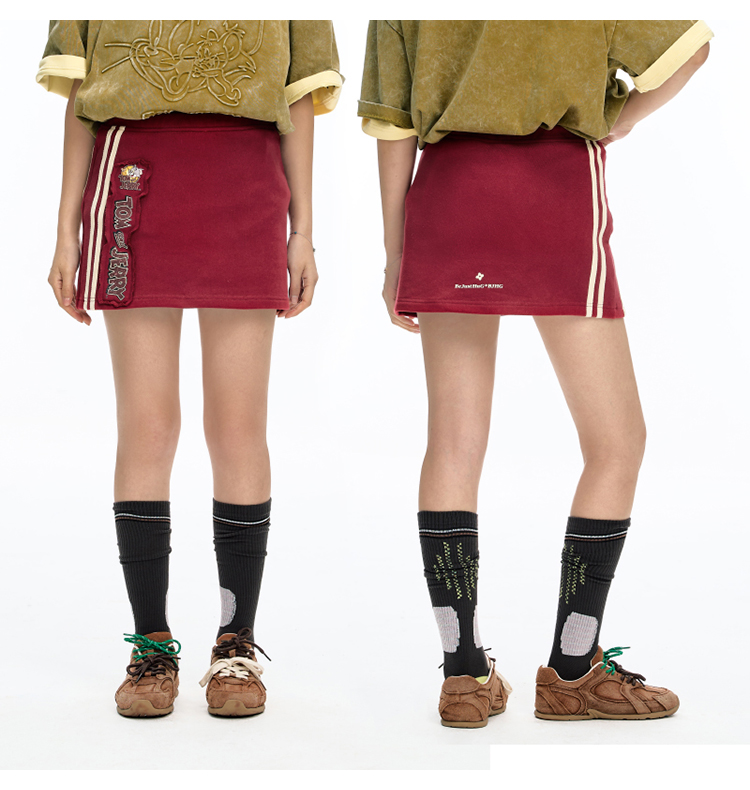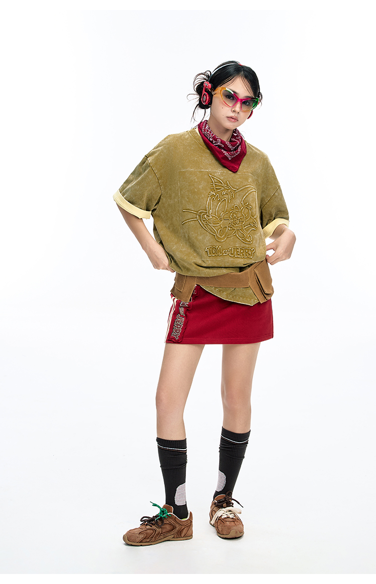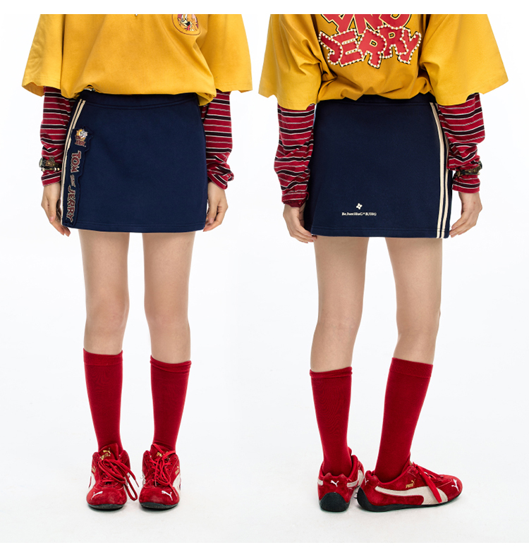 【猫和老鼠联名】BJHG不计后果复古辣妹白色短裙女织带印花半身裙