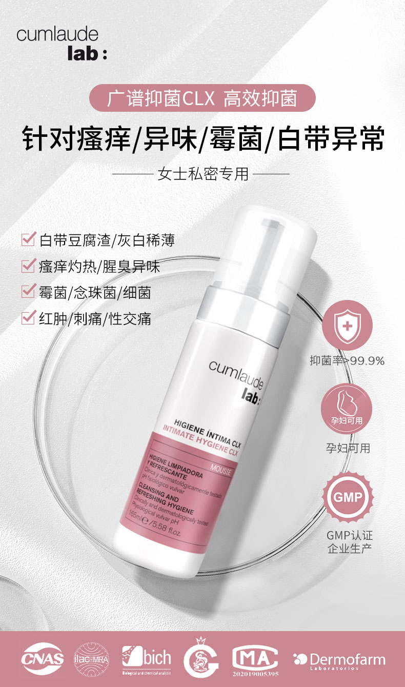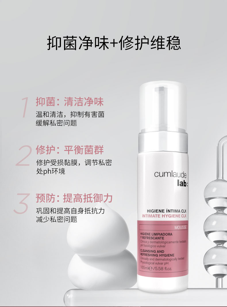 【跨境】Cumlaude珂蔓朵 洗必泰健康护理慕斯 165ml