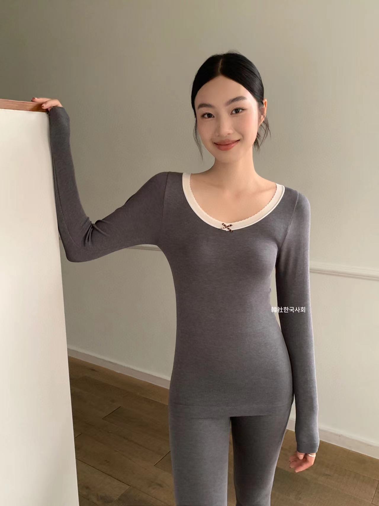 老米优品🎈3-5天发!超值秋冬内搭~《绵羊毛V领轻感发热套装》秋衣秋裤套装! 大v领女修身保暖内衣 ~高弹力秋衣秋裤