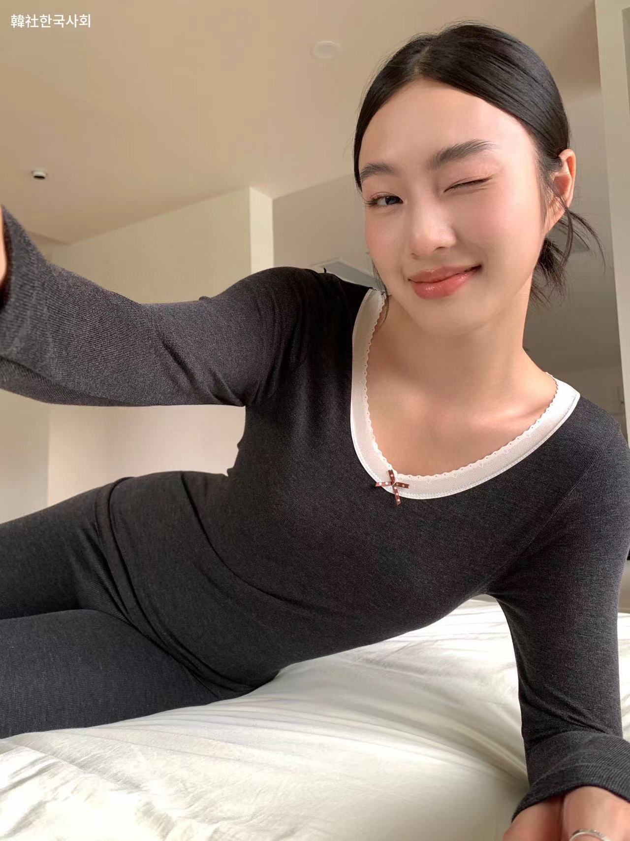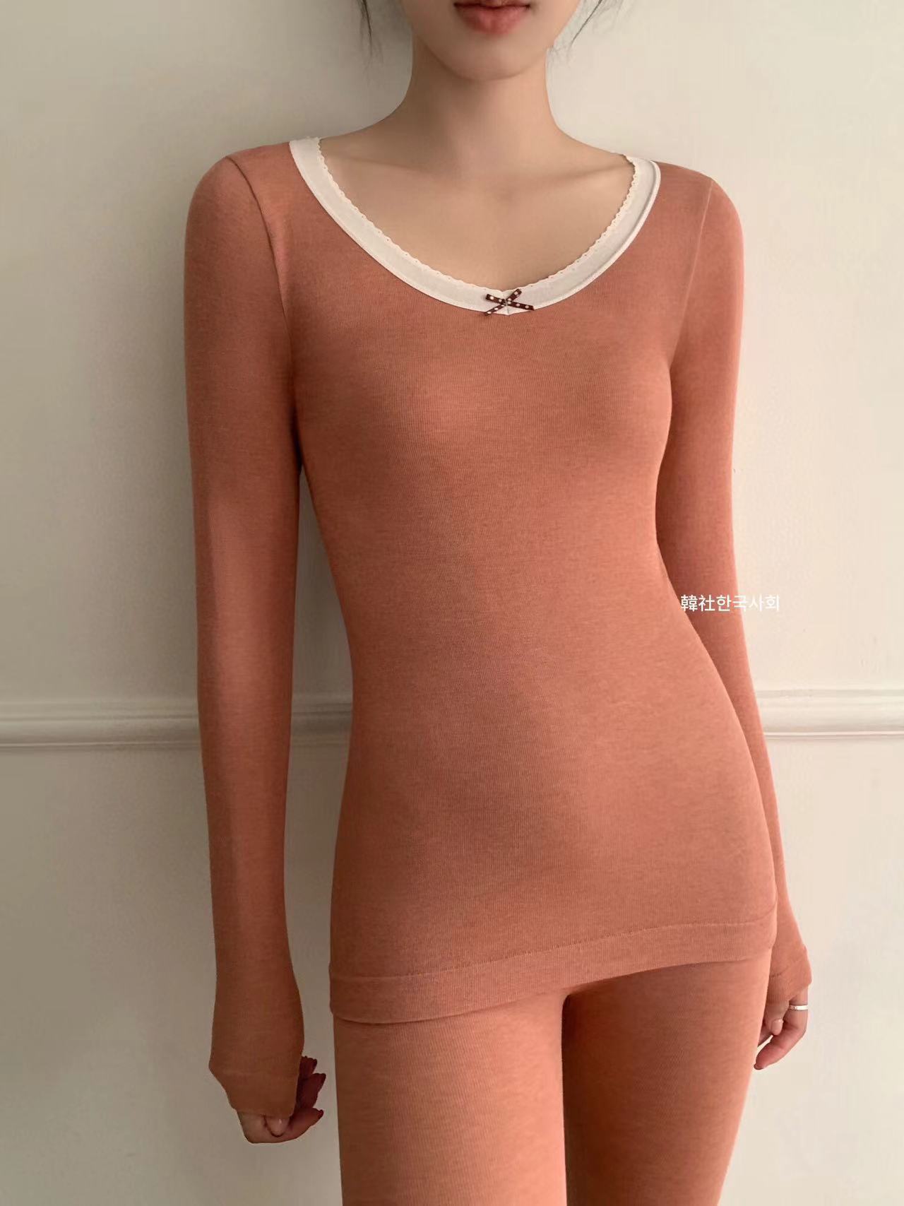 偏向于圆领的大V领设计,很好看啊!修饰颈部线条,展现优雅气质,并且内搭可隐形。修身剪裁贴合身形,裤子高腰包裹性好, 可以很好的温暖腰腹还显瘦~ 高弹力面料带来极致舒适体验。内搭又暖又舒适,还有点好看~