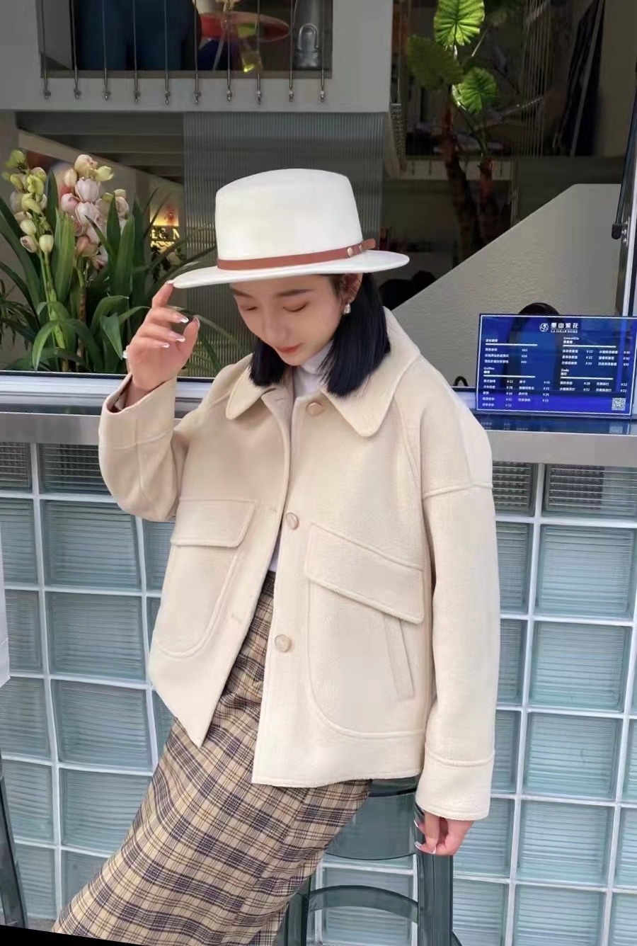 蓝色衣典88182.时尚短款羊绒,粉,米,红三个颜色,M,L两个型号,