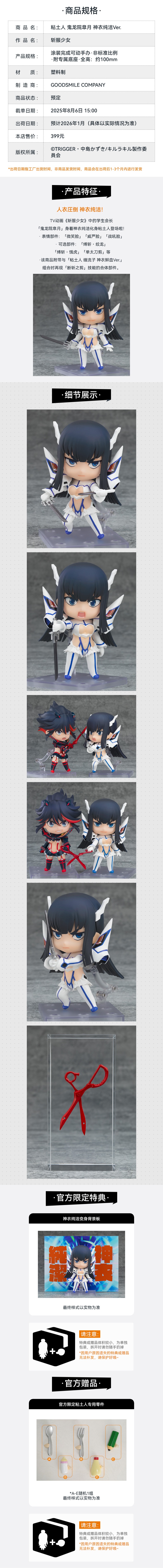【GSC补款】粘土人 鬼龙院皐月 神衣纯洁Ver.斩服少女 附官方限定特典