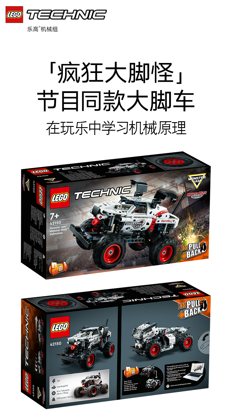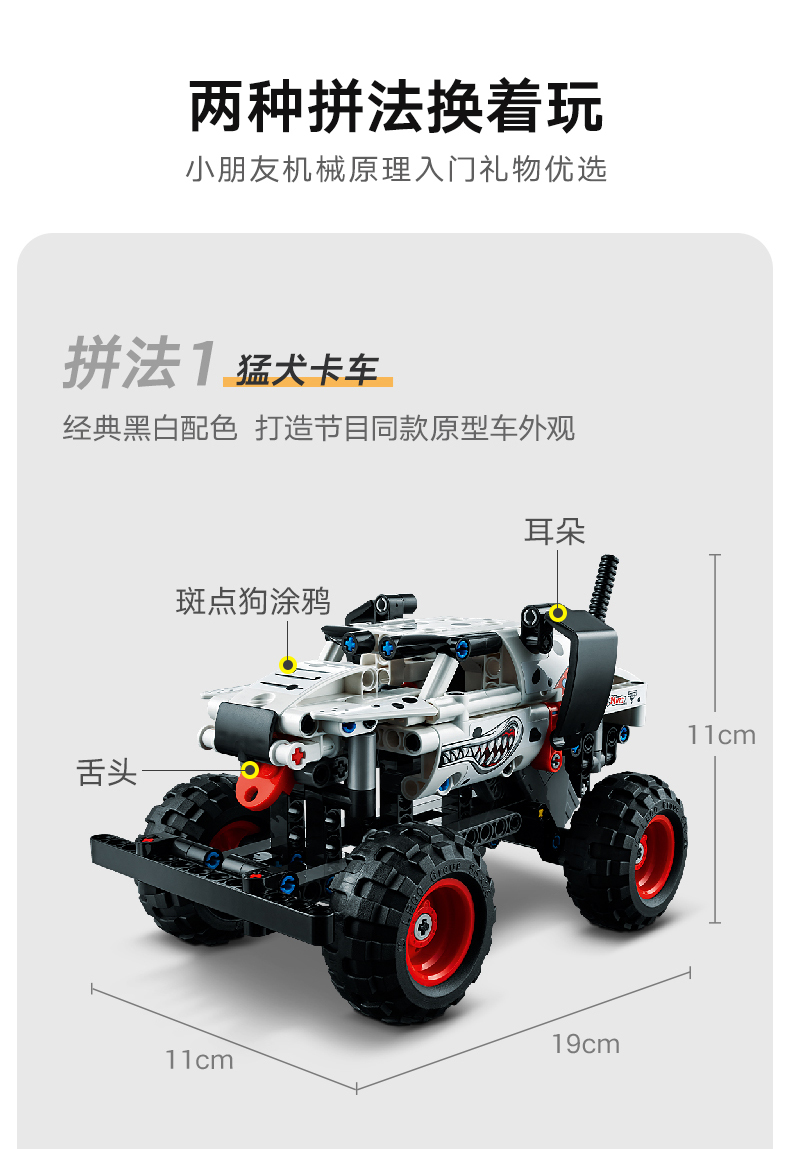 乐高机械组 拼搭猛犬卡车+飞速越野赛车两种造型 机械拼搭 话是特技动作 42150机械组猛犬卡车模型积木