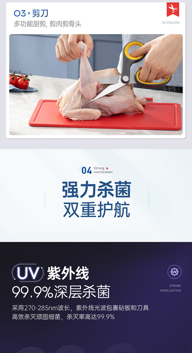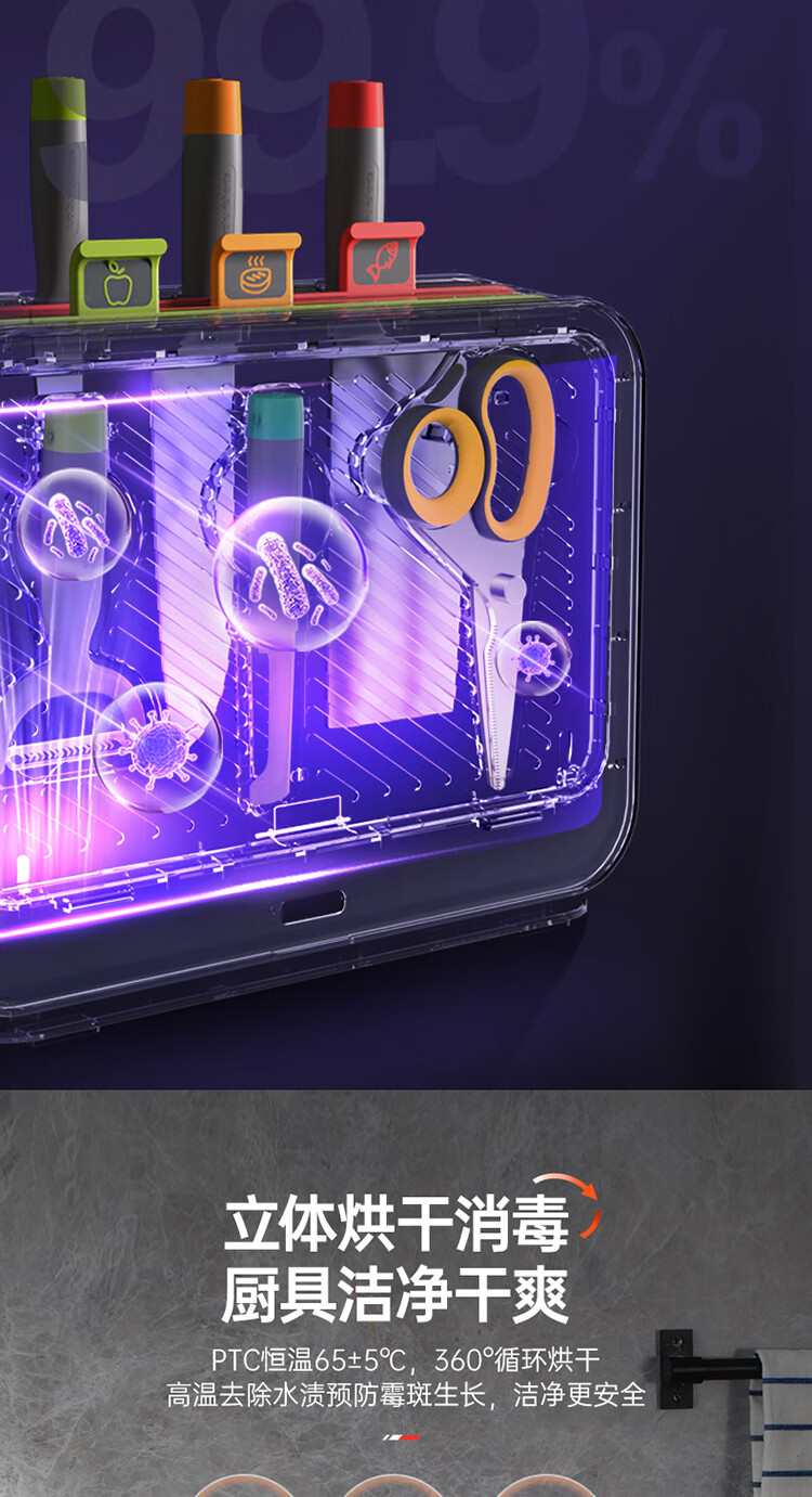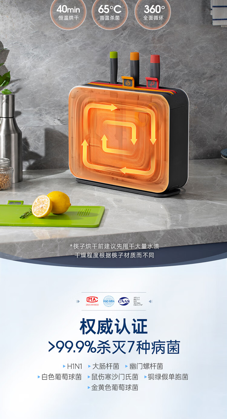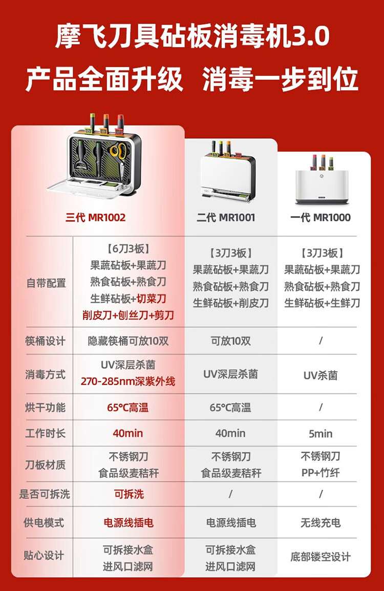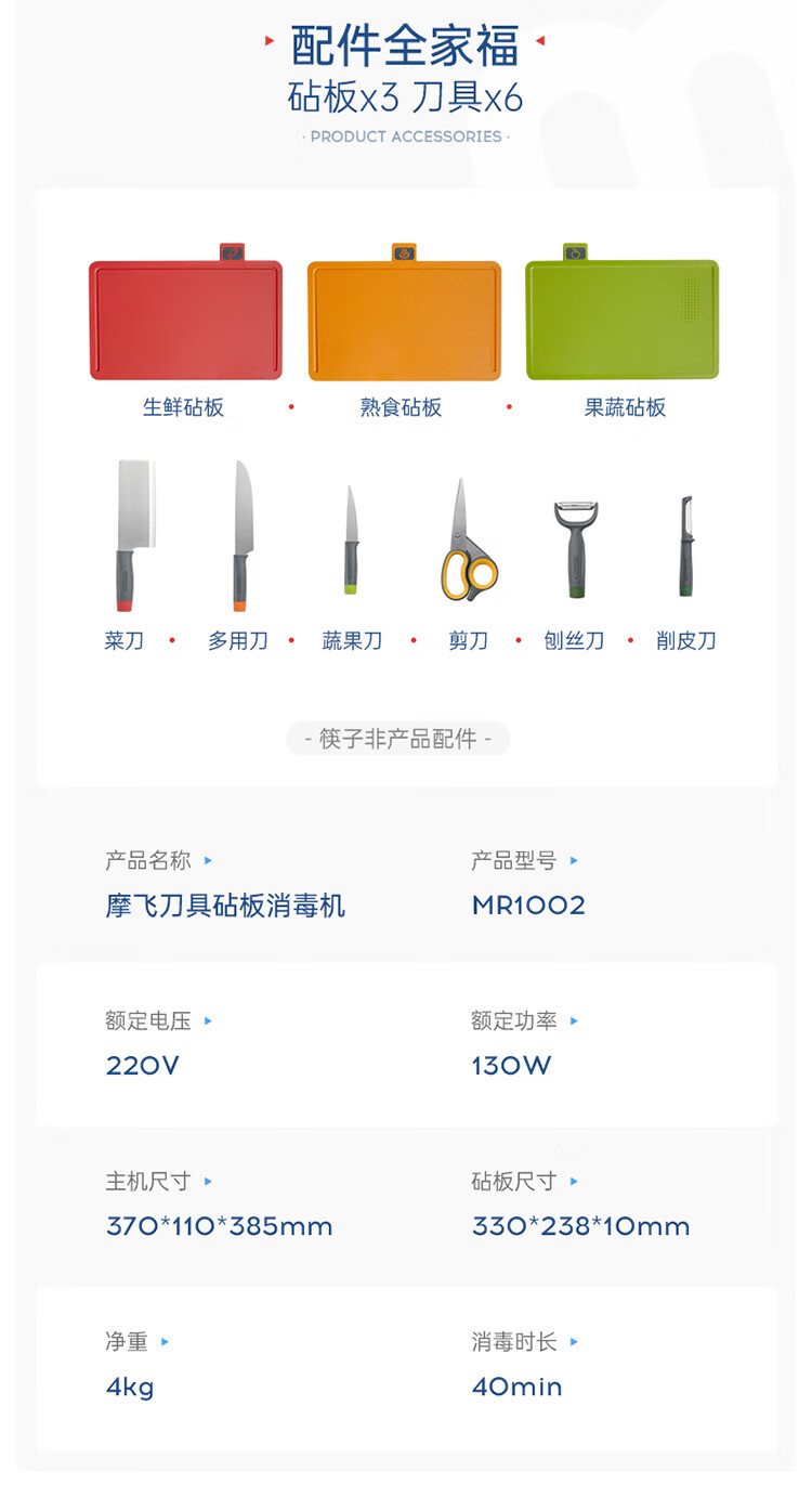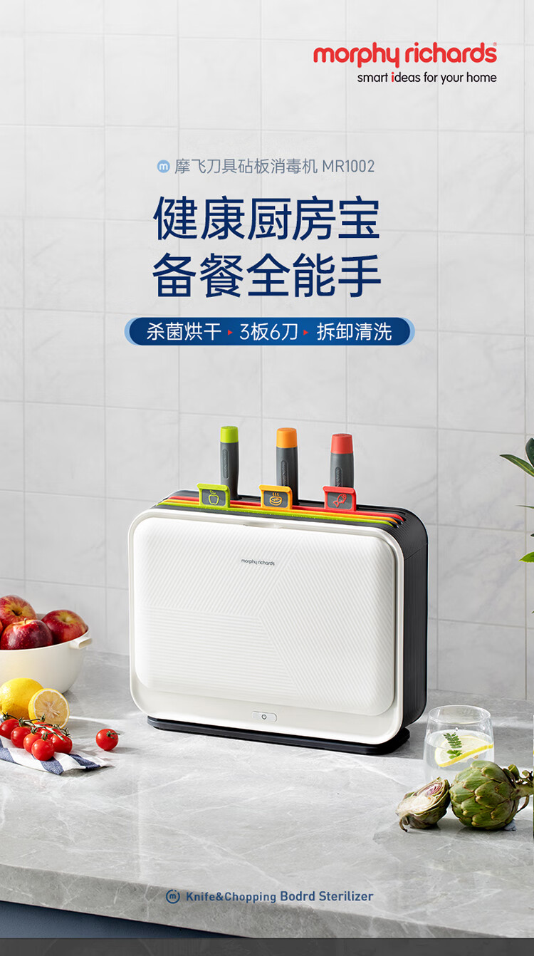 摩飞电器(Morphyrichards) 刀具砧板筷子消毒机消毒刀架菜板消毒烘干一体机MR1002 【三代】刀砧筷消毒机