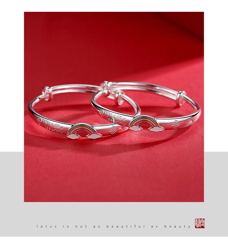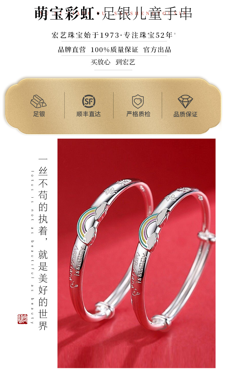 【宏艺珠宝】萌宝彩虹儿童手镯·足银手镯