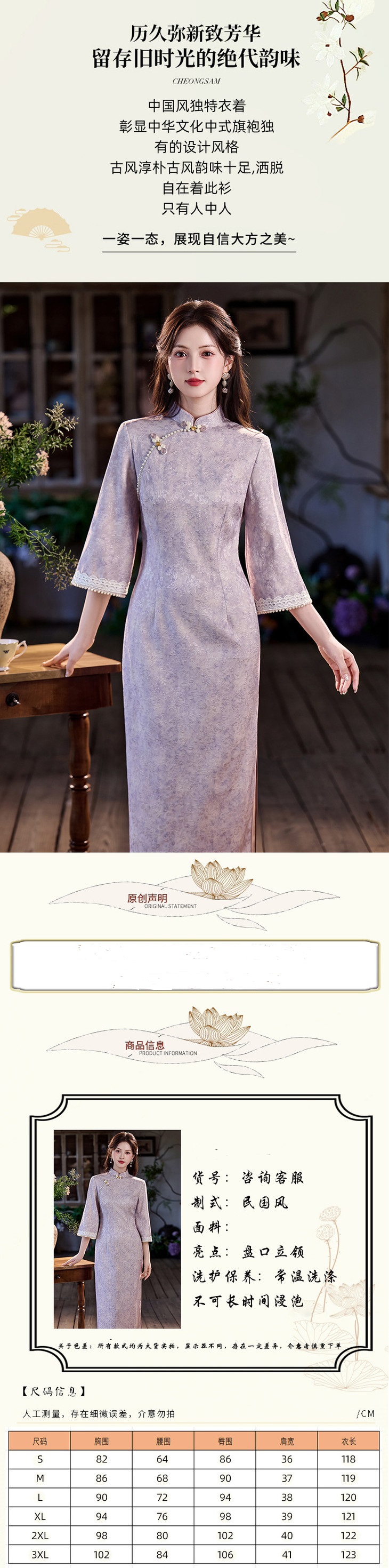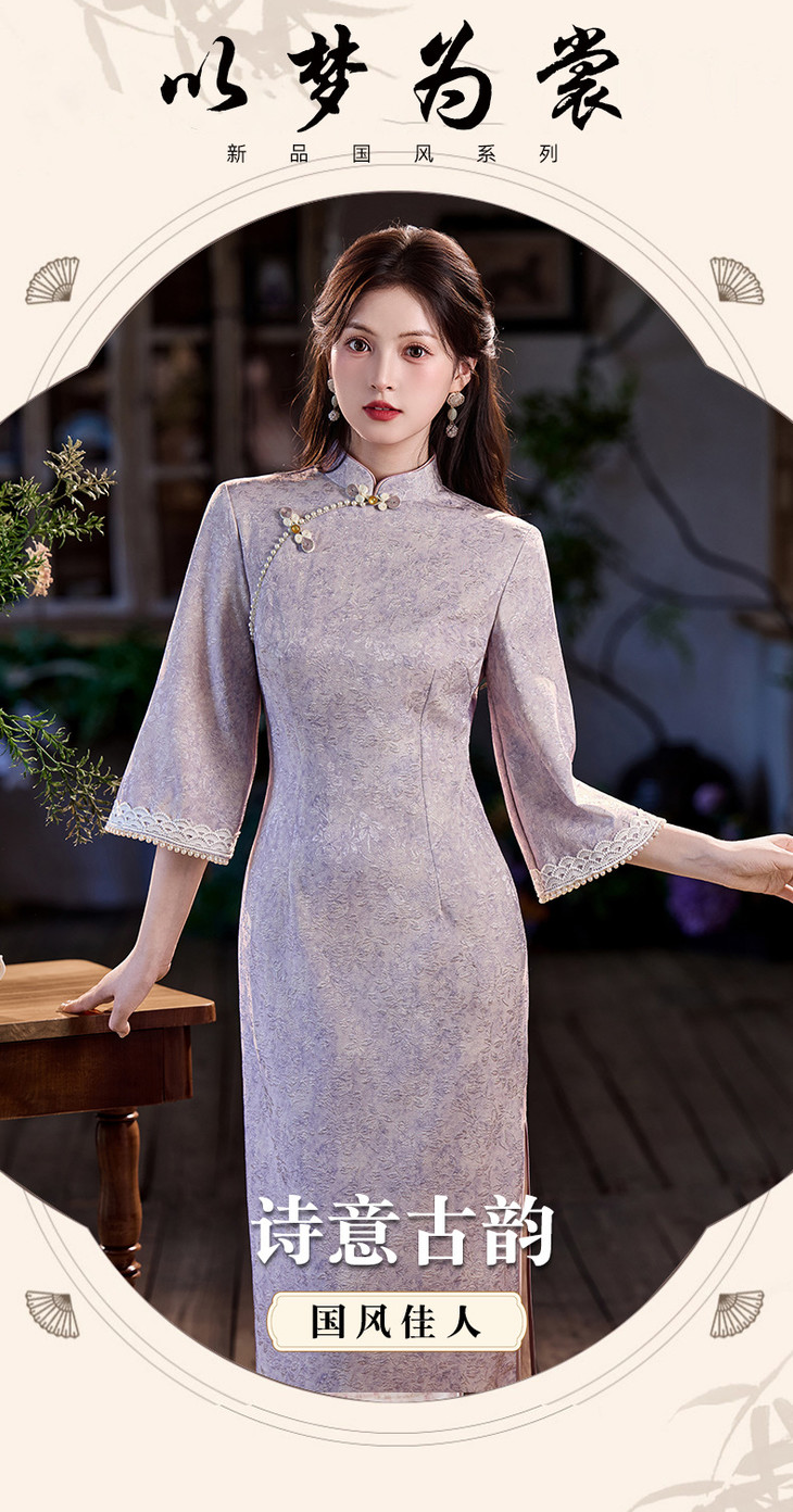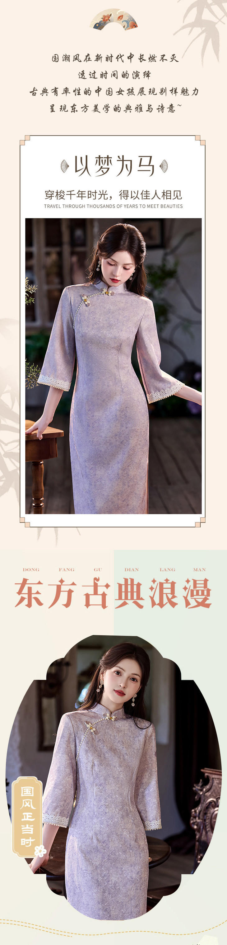 复合提花缎长款倒大袖旗袍,新中式高级感紫色旗袍SJT-862