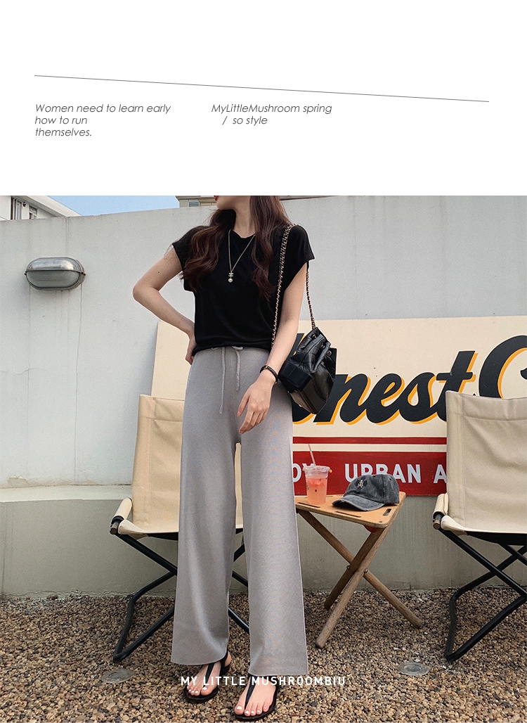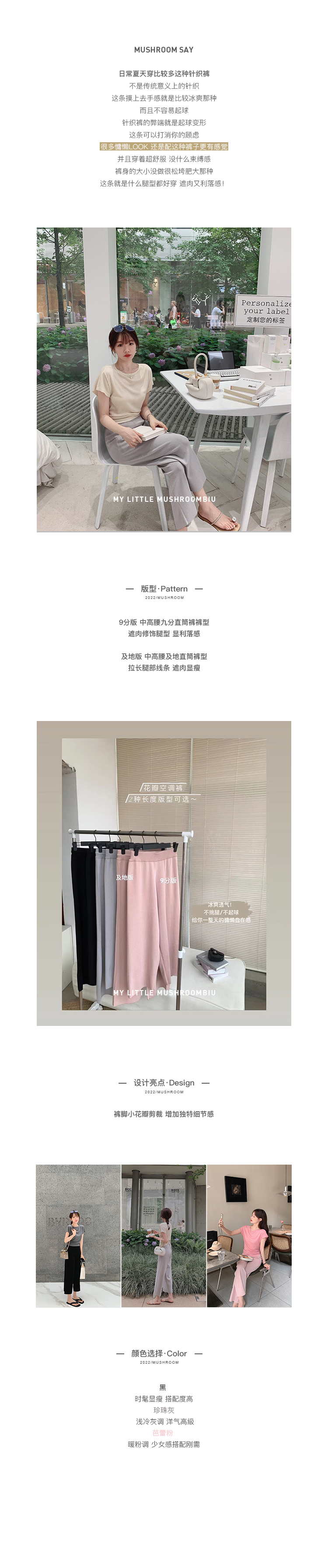 金蘑菇菇【花瓣空调裤】 冰爽不挑腿型直筒针织裤