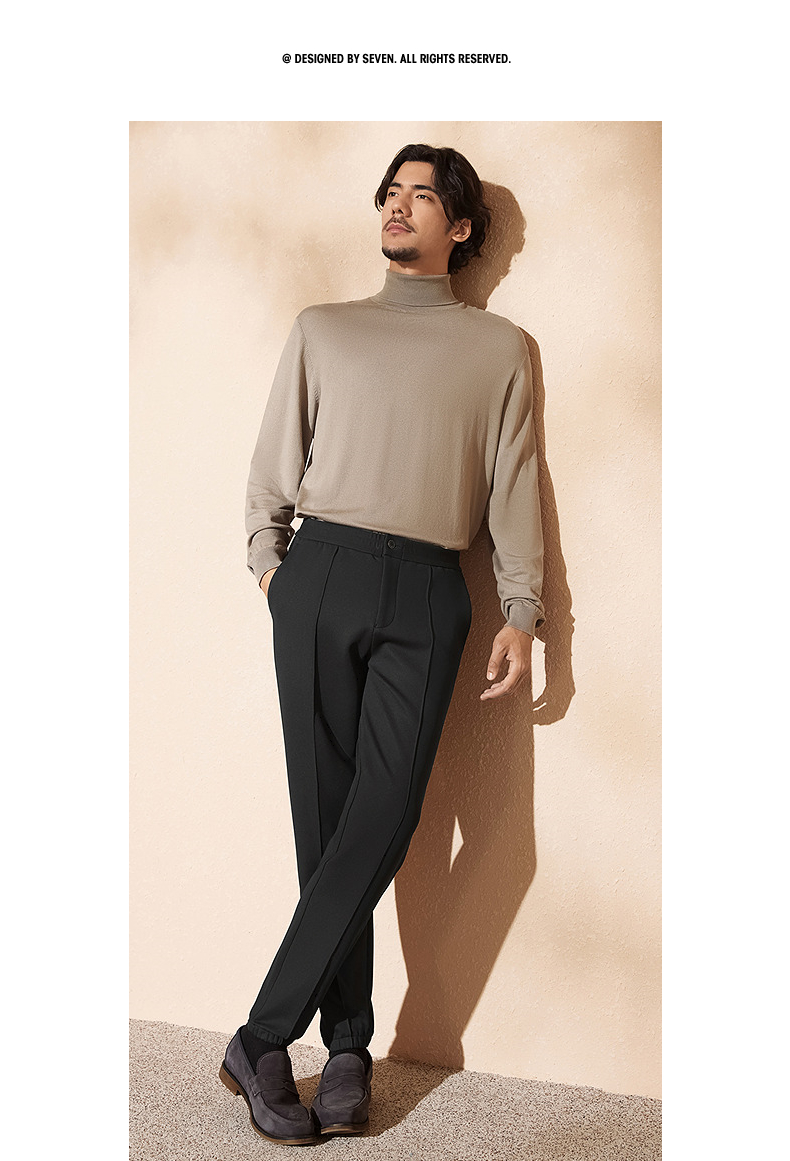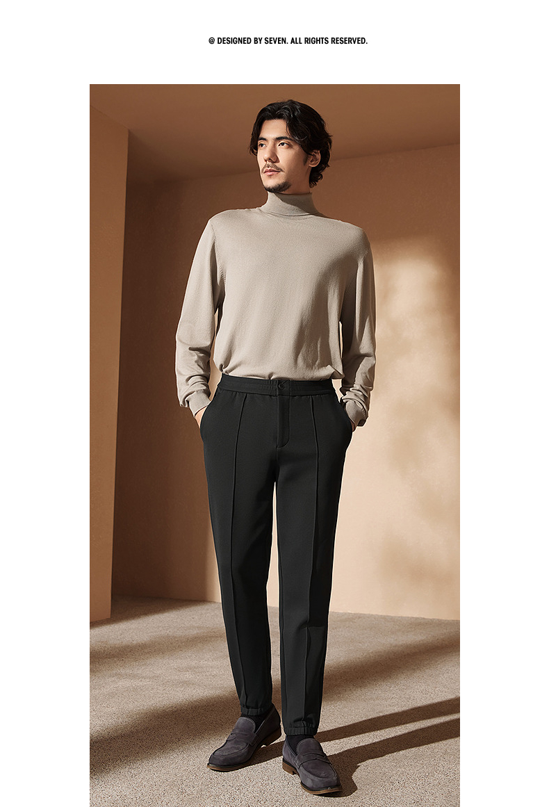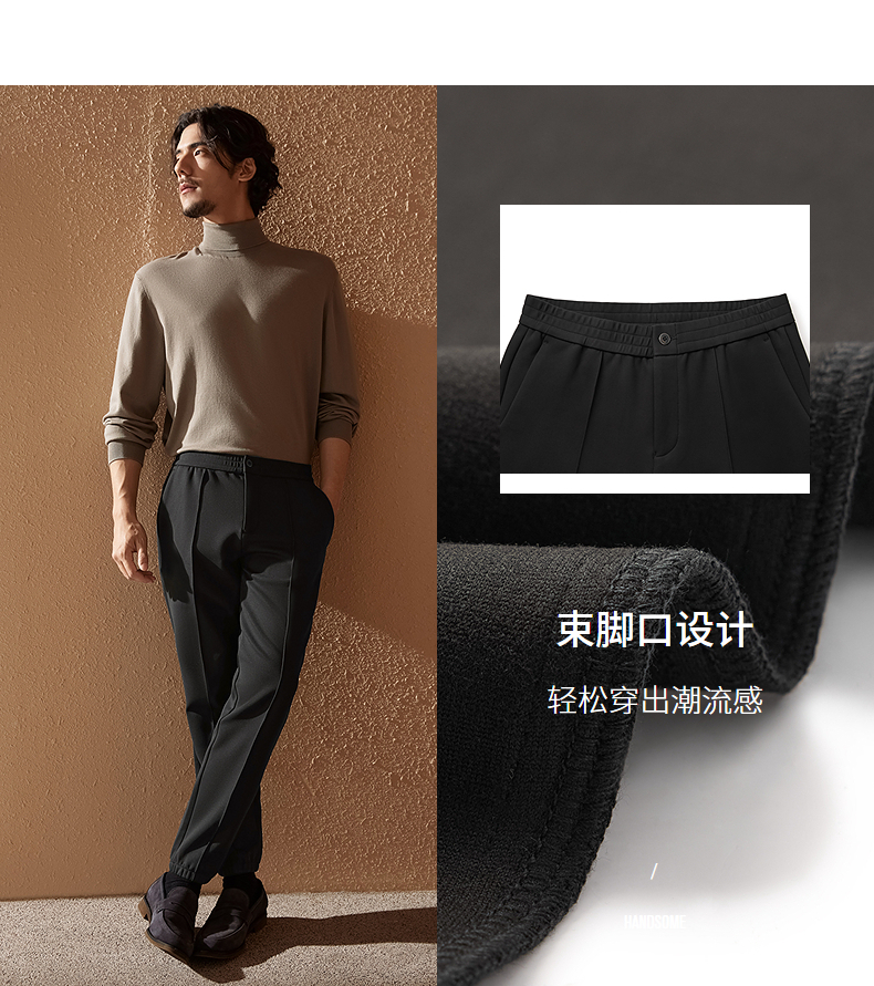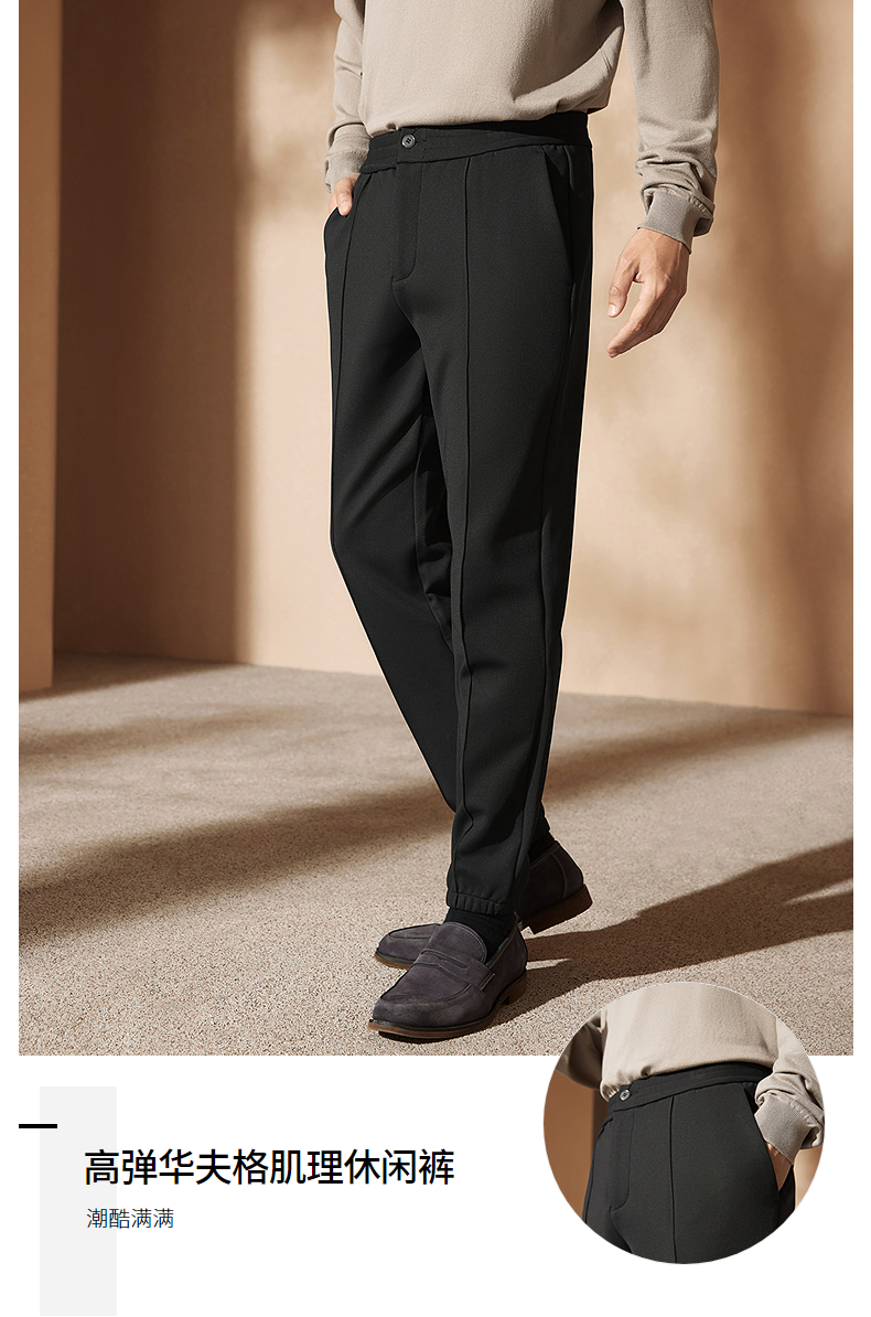 【中华立领】柒牌华夫格休闲裤男士2024秋季新款时尚百搭束脚长裤 127H71100