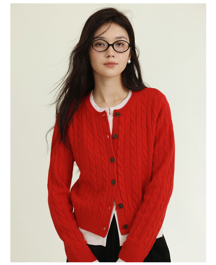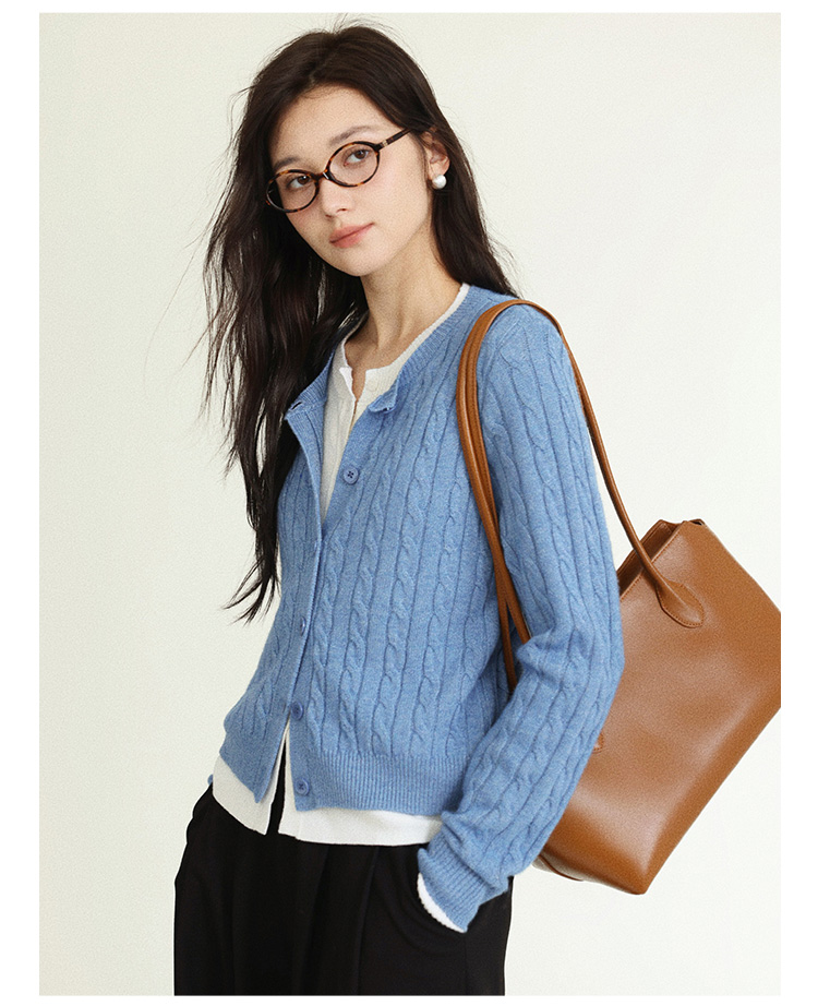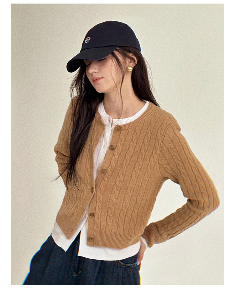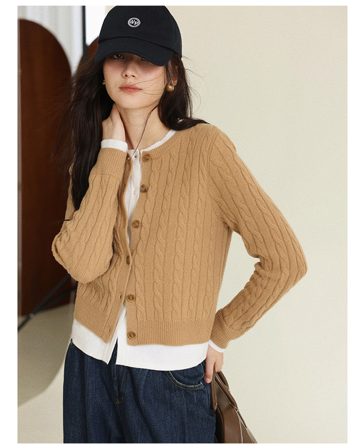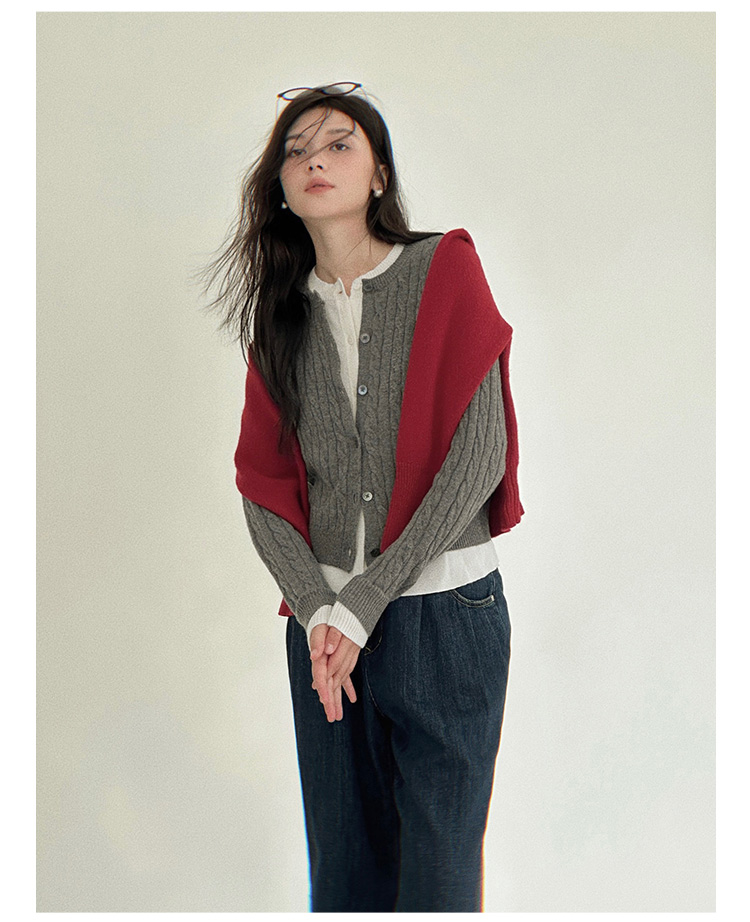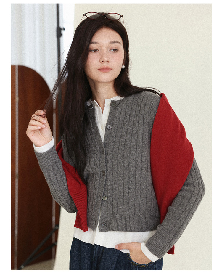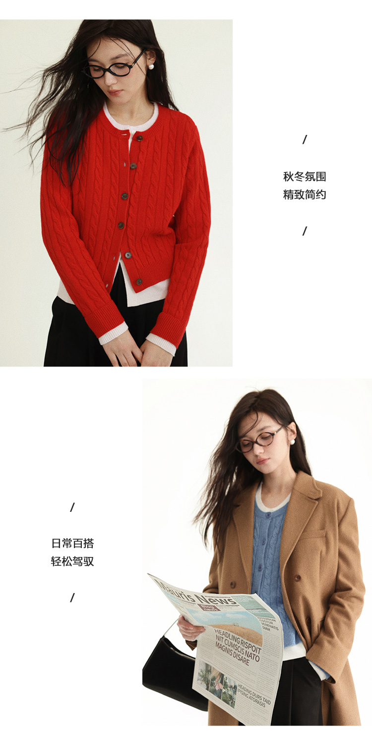 Even Vintage|美利奴羊毛 基础款复古英伦绞花假两件秋冬针织开衫