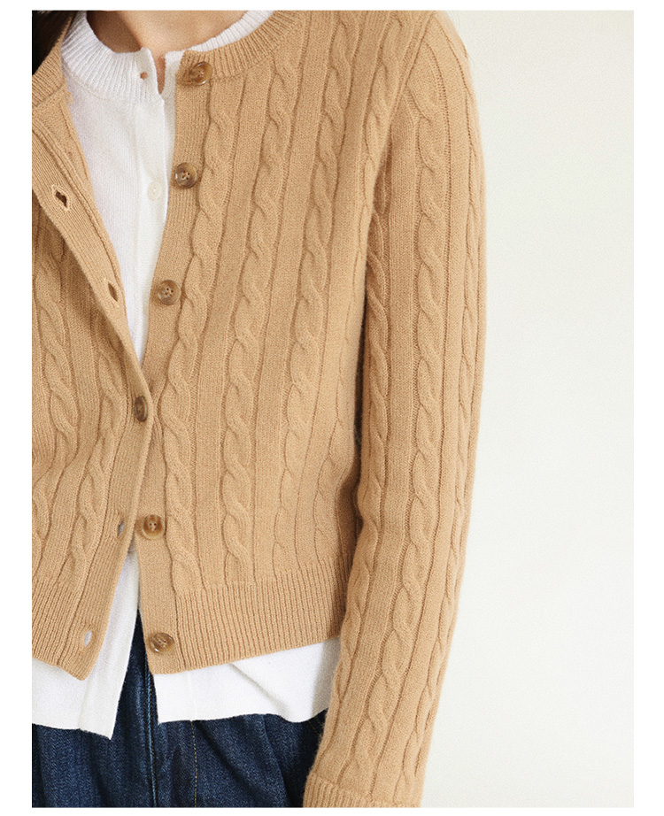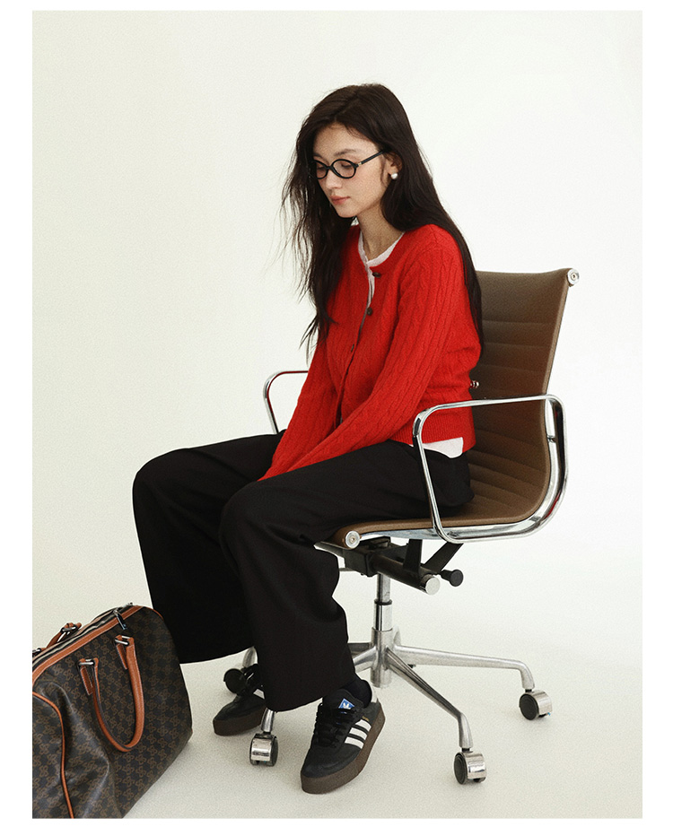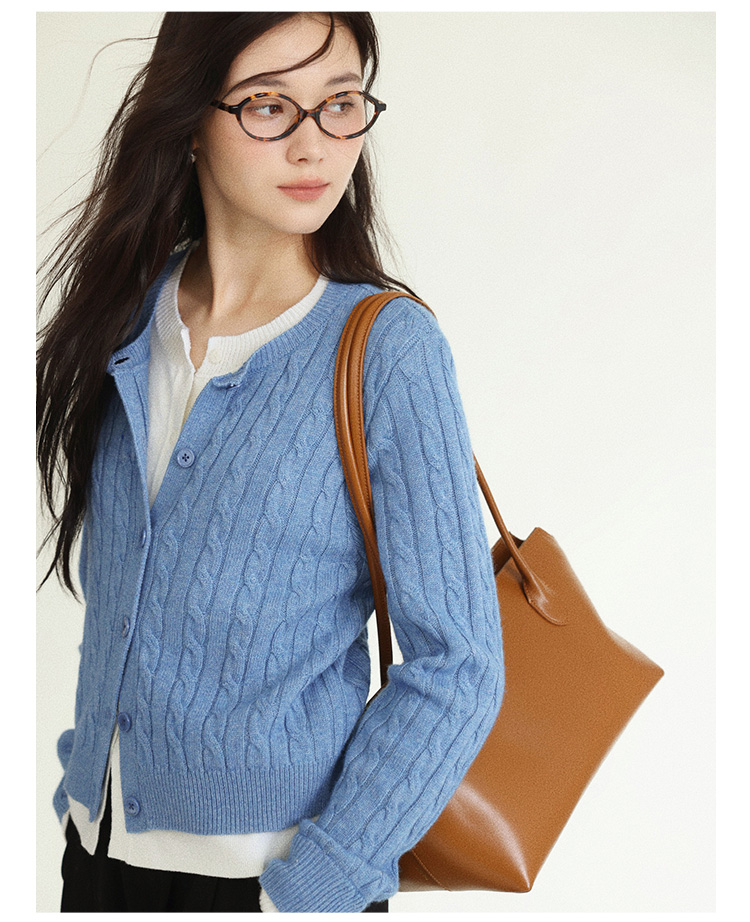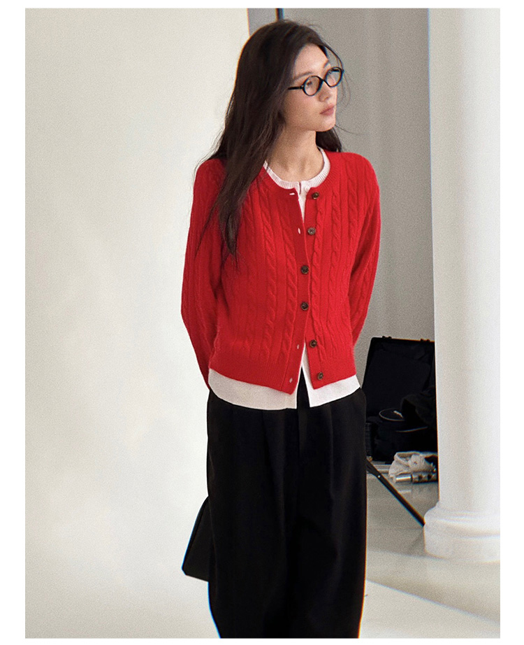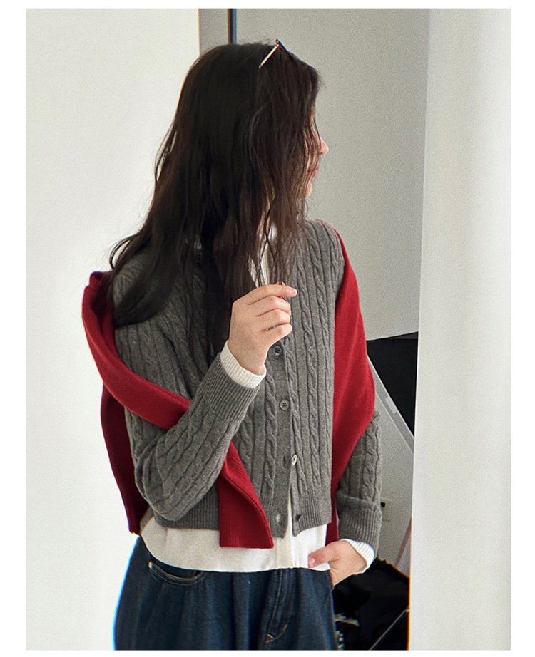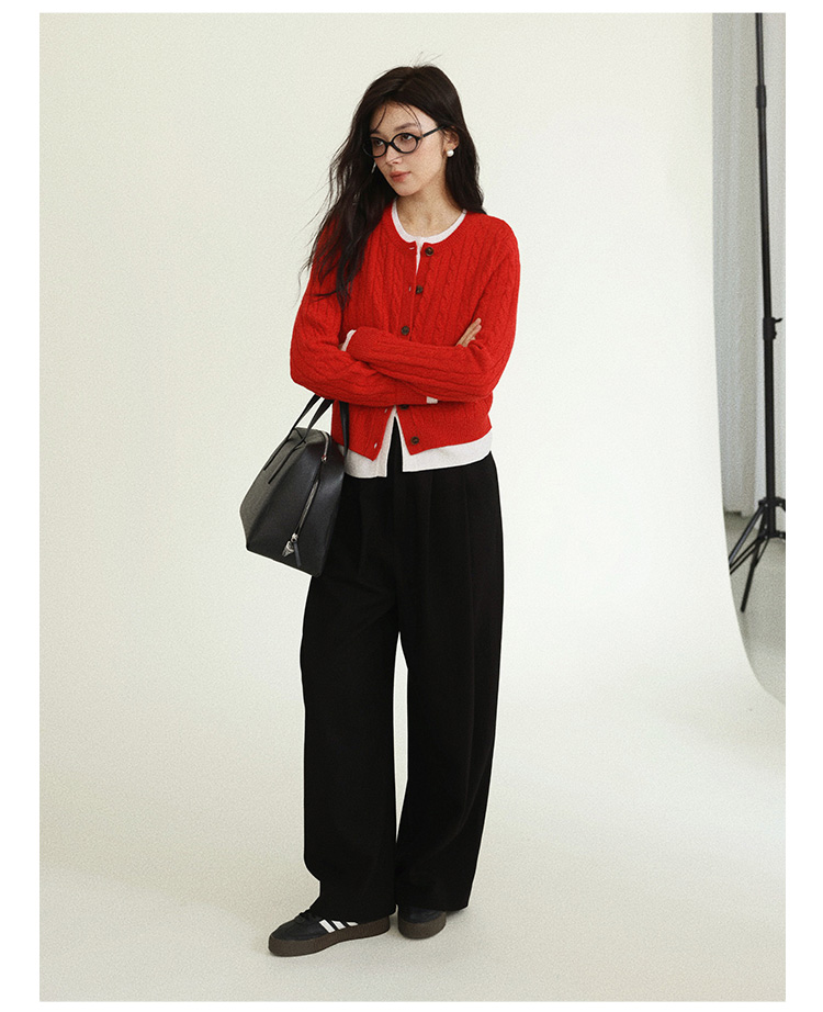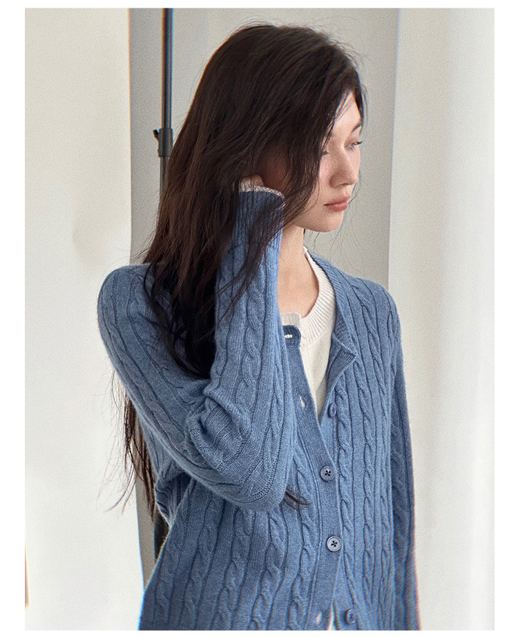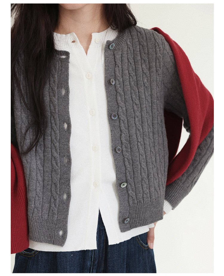 Even Vintage|美利奴羊毛 基础款复古英伦绞花假两件秋冬针织开衫