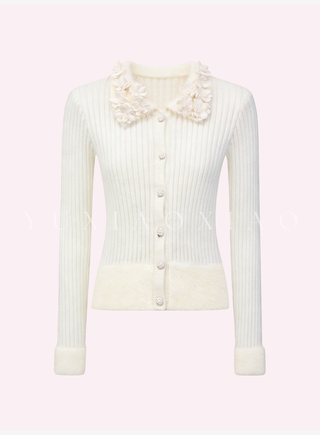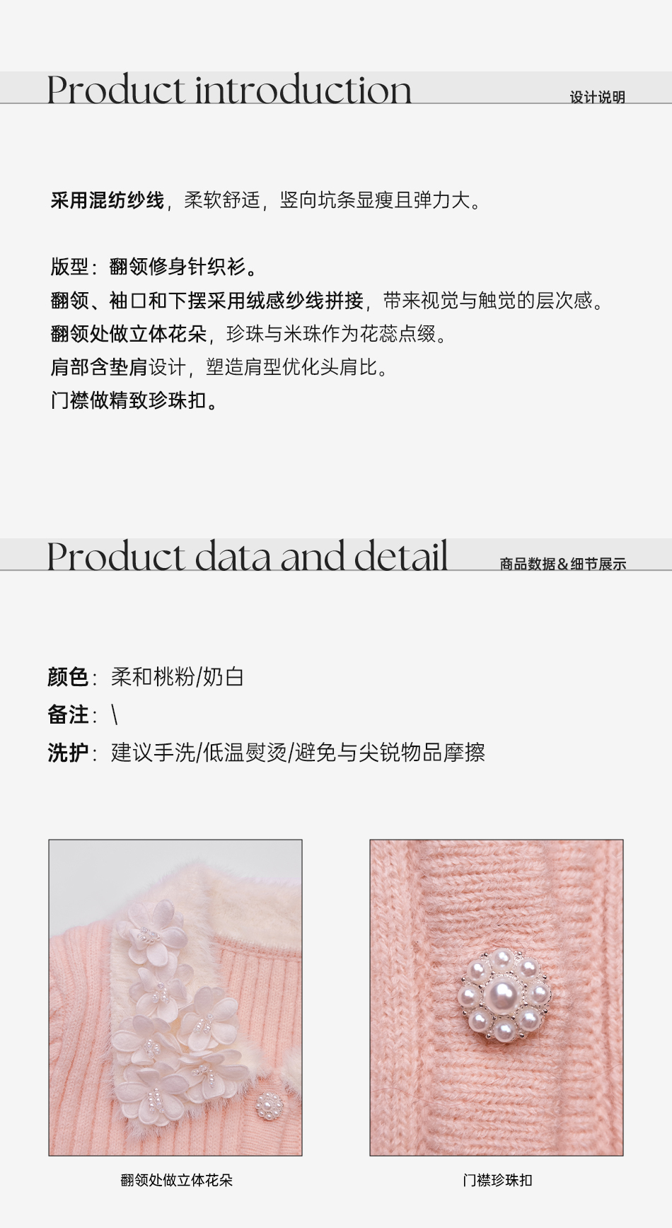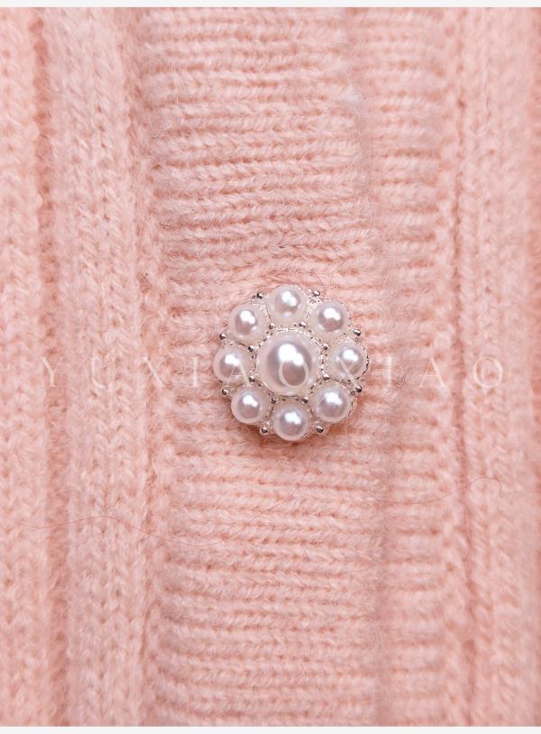 余潇潇【甜心修炼】柔软舒适坑条显瘦弹力花朵翻领修身垫肩针织衫