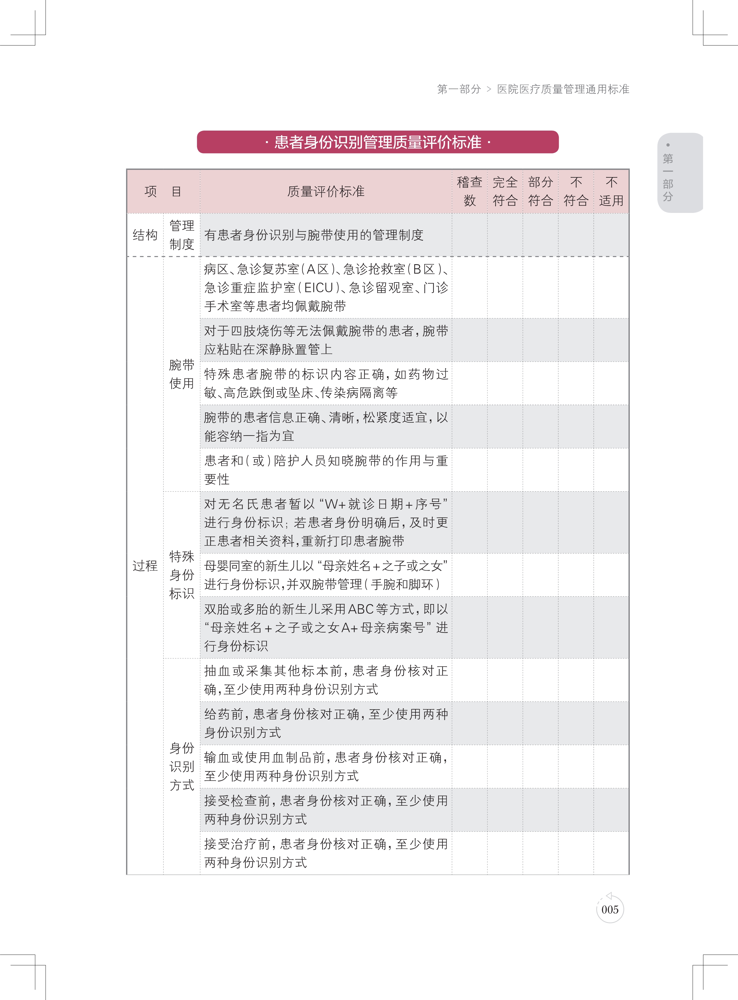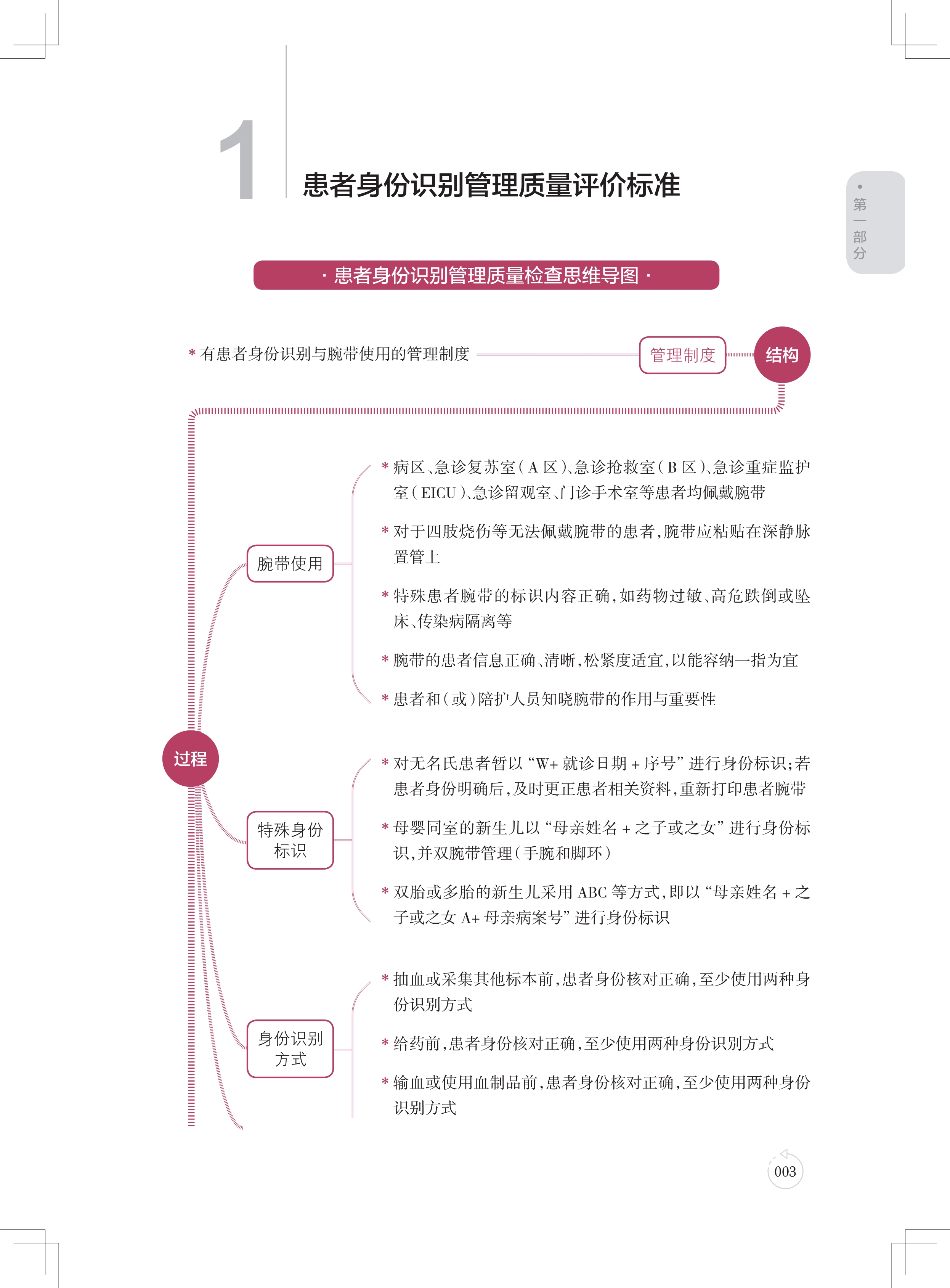 本书是为医院质量管理者及员工编写的医疗质量评估指导用书,便于管理人员进行质量要点培训与考核。全书以临床、医技科室和全院共性需求为逻辑条目,以思维导图和表格相结合的形式,按通用性、权重性修订了医院通用标准、住院部、门诊部、急诊部、医技科室等43项医疗质量评价标准