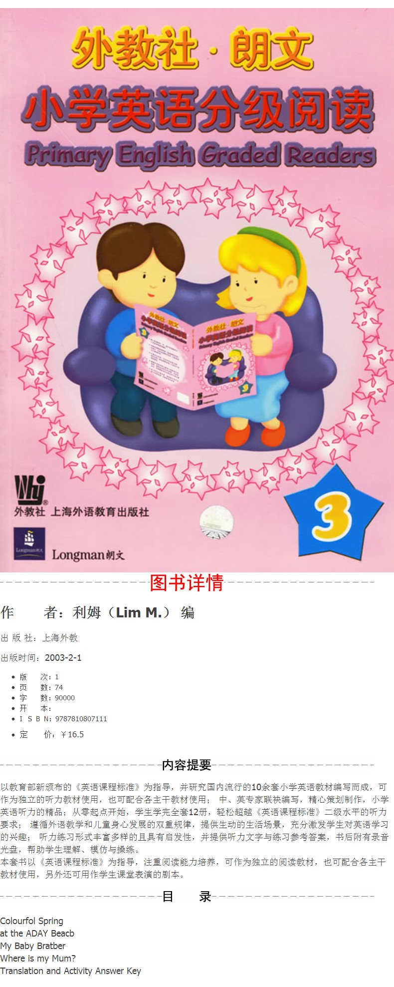 正版 外教社.朗文 小学英语分级阅读外交社朗文小学英语分级阅读3(含光盘)