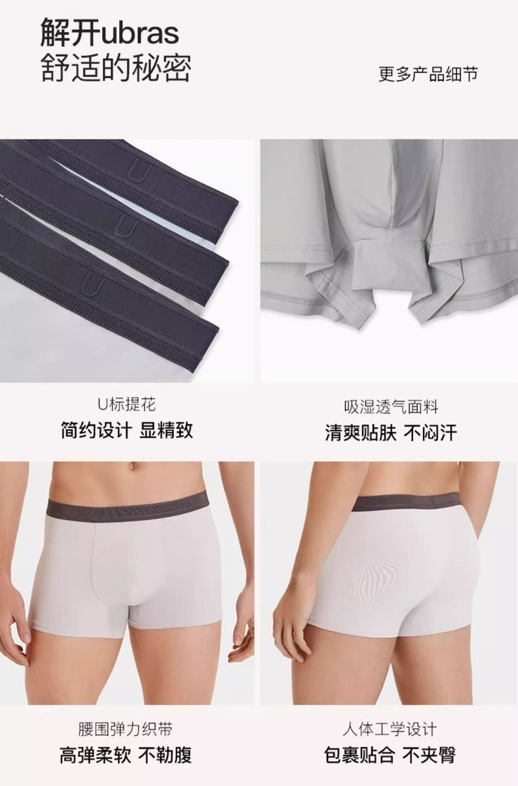 【ubras速干棉纯棉抗菌裆男士四角裤(三条装)】✅采用速干棉纱织造,自带凉感,干爽朴素的棉质感,纱线级别的吸湿速干 ✅7A级抗菌纯棉底裆,水洗150次后仍能保持抗菌,24小时安心呵护
