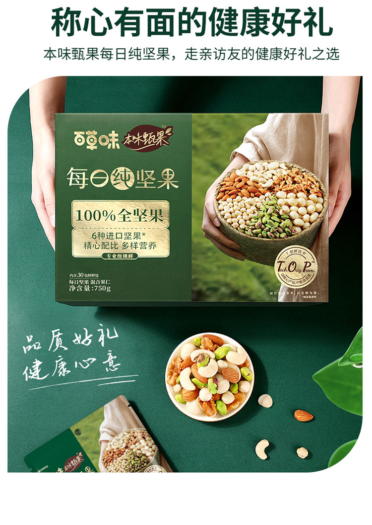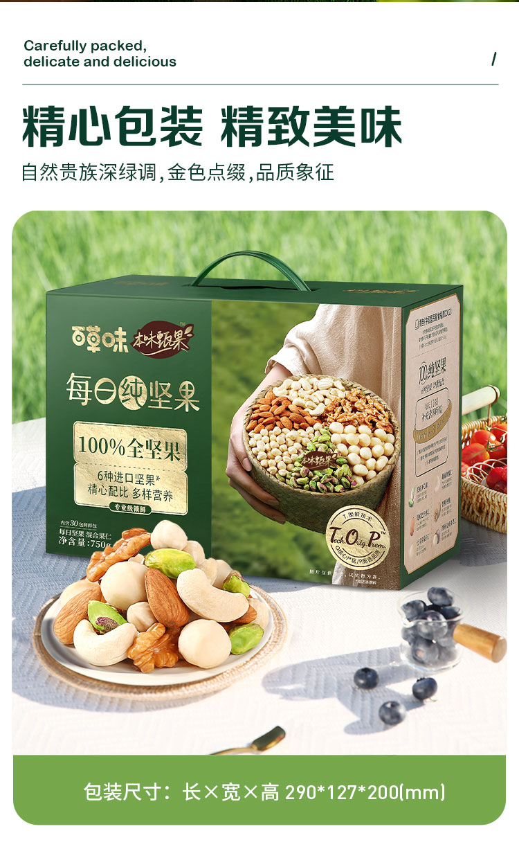 [小滋心选]【活动价¥268】优选【百草味】本味甄果系列-全坚果每日坚果750g *2盒
