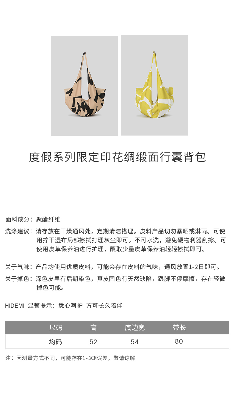 HIDEMI度假系列限定印花绸缎面行囊背包