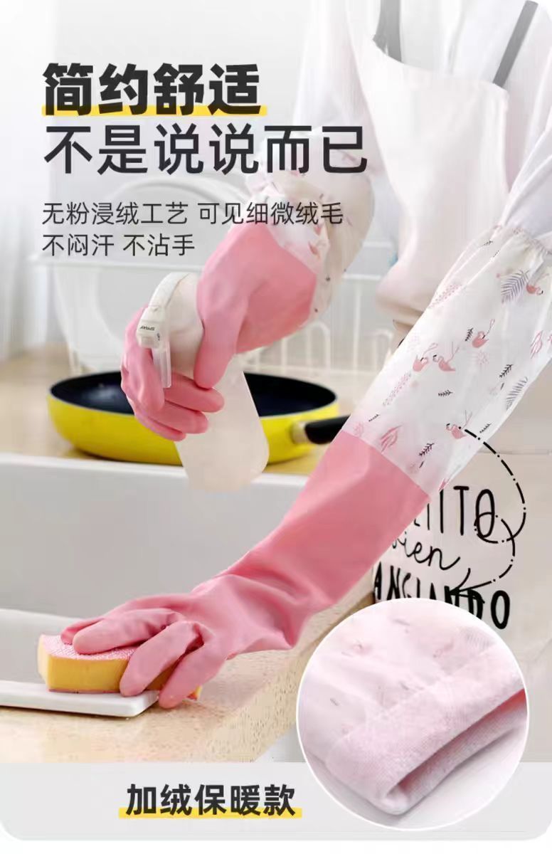 【醒粉福利9.9元2双】加厚加绒洗碗手套 防水橡胶厨房耐用胶皮橡胶家务家务手套