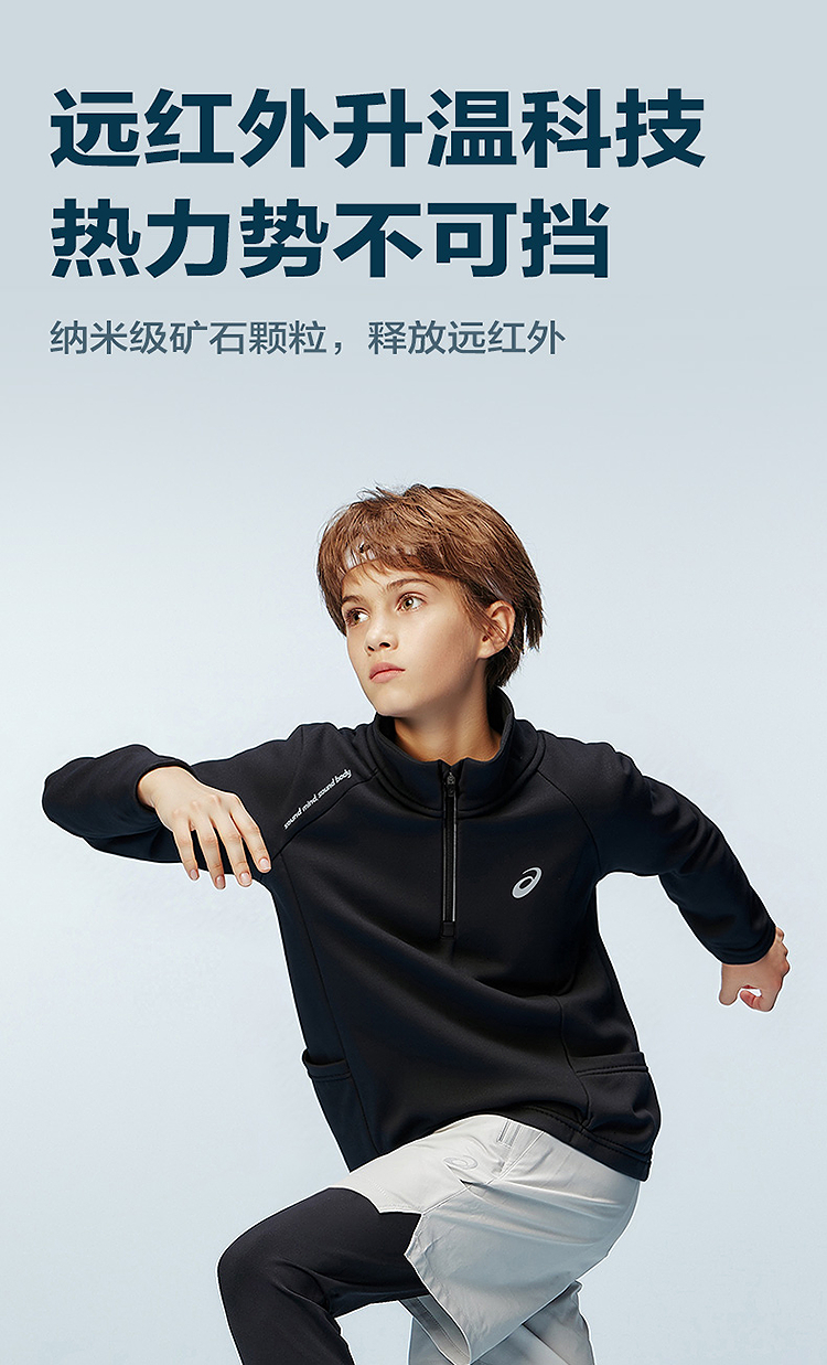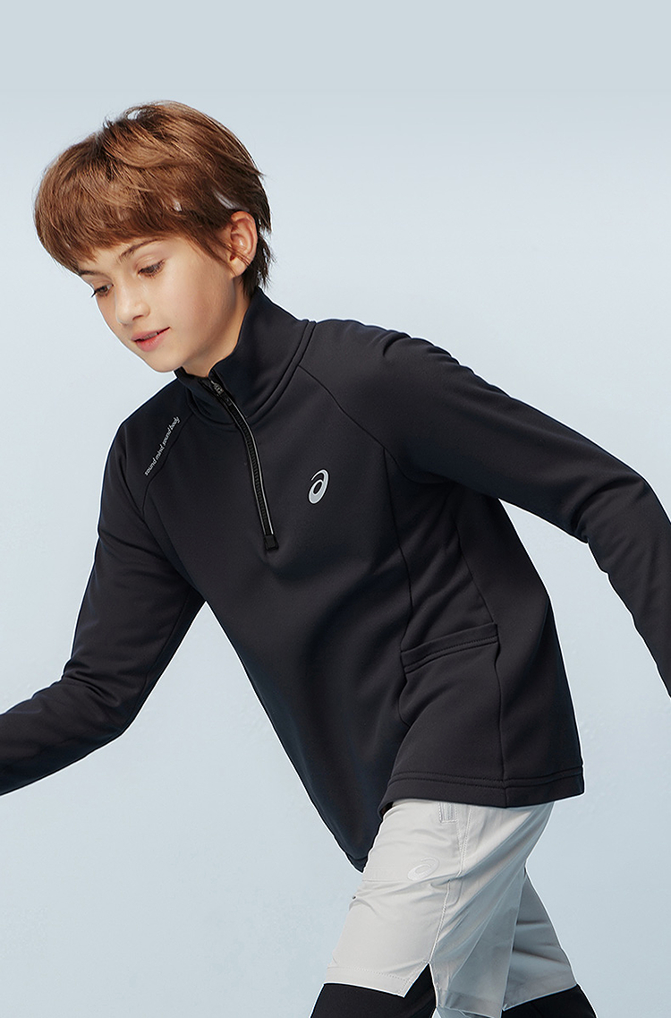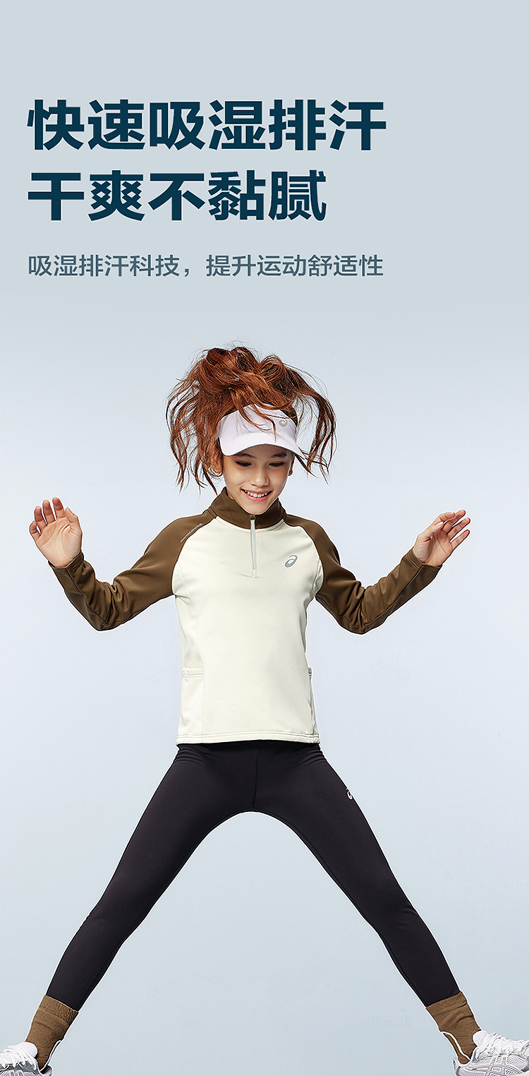 ASICS/亚瑟士童装25年冬季儿童拼色半拉链速干长袖吸湿排汗保暖
