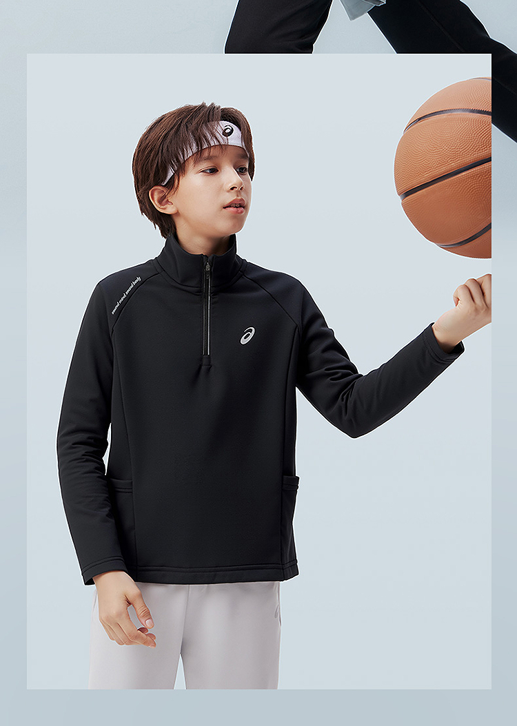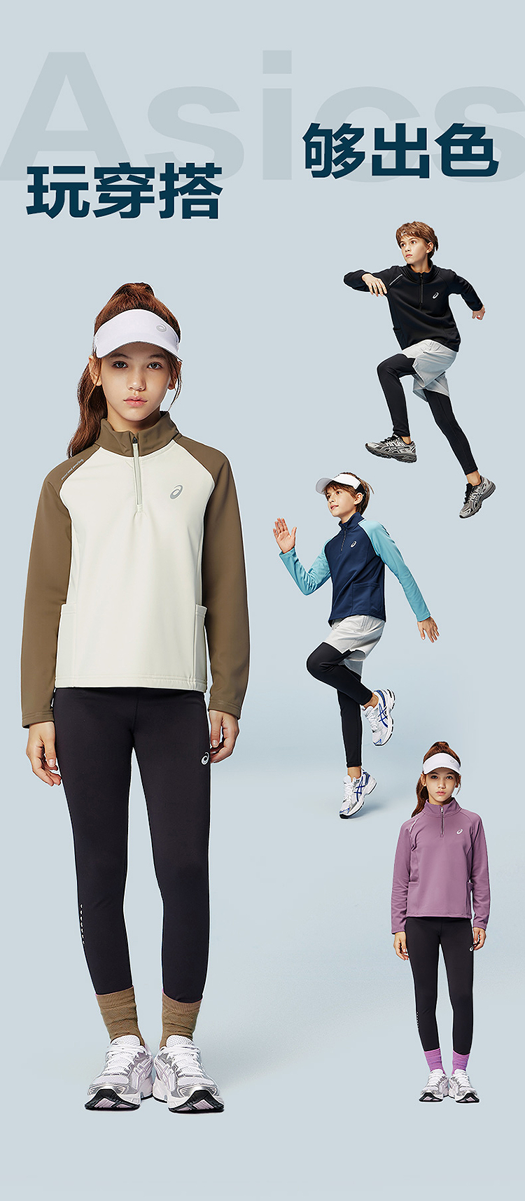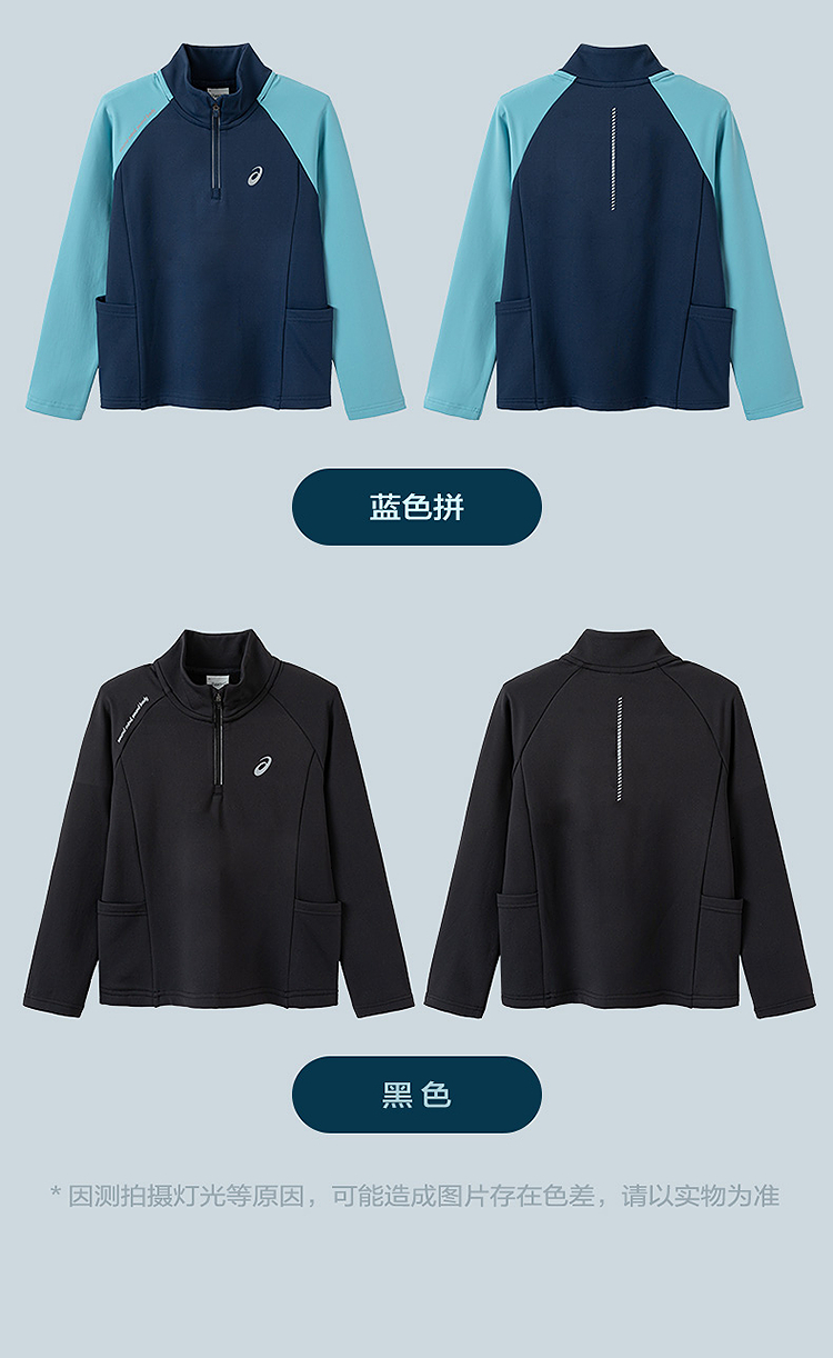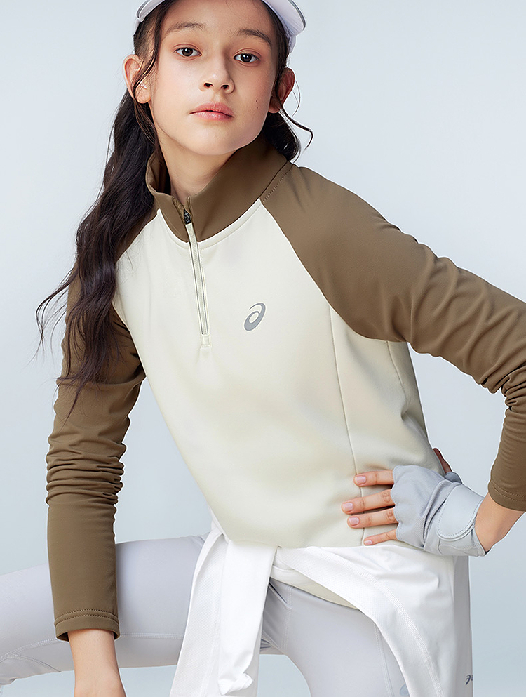 ASICS/亚瑟士童装25年冬季儿童拼色半拉链速干长袖吸湿排汗保暖