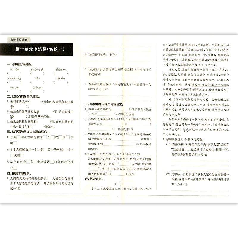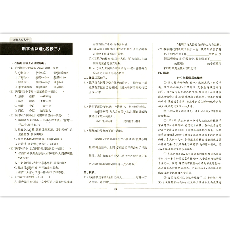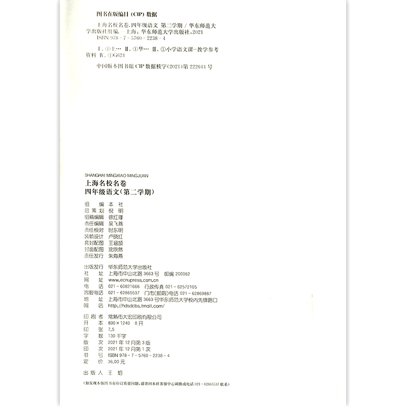 2022上海名校名卷四年级下册 语文 4年级下/第二学期 部编版 与上海小学语文教材配套 单元测试卷期中期末满分冲刺卷 华东师范大学