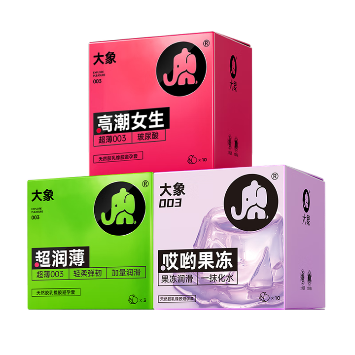 大象 003超薄避孕套 玻尿酸安全套 螺纹大颗粒 成人情趣 计生用品 003果冻玻尿酸23只