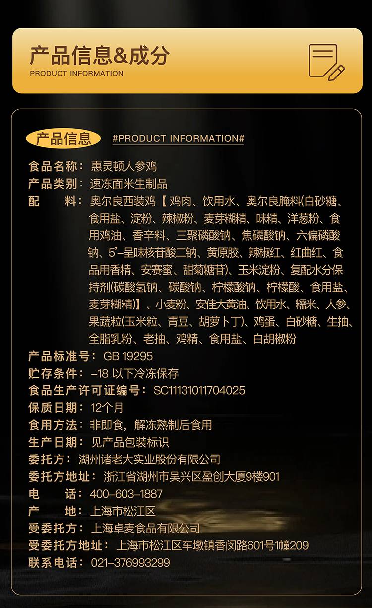 【诸老大X小养】惠灵顿人参鸡500g*1+鸡腿堡65g*2【包邮直发】