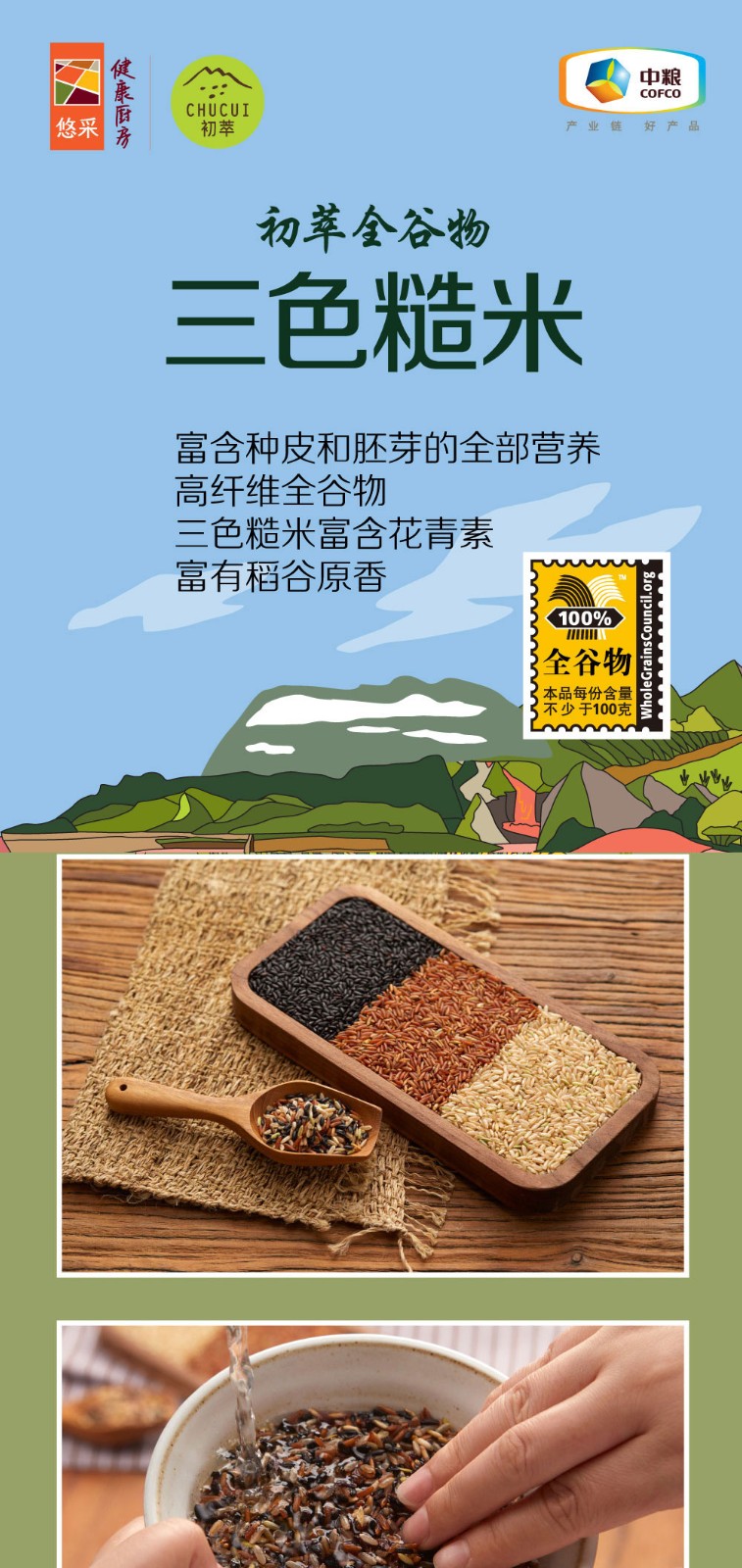 中粮初萃全谷物三色糙米1kg