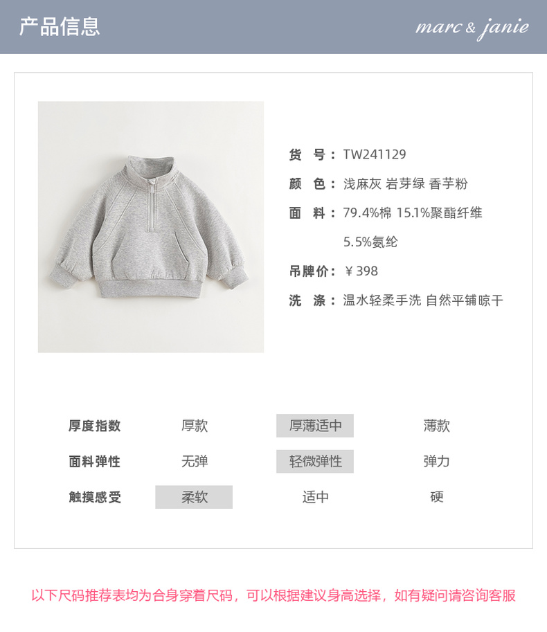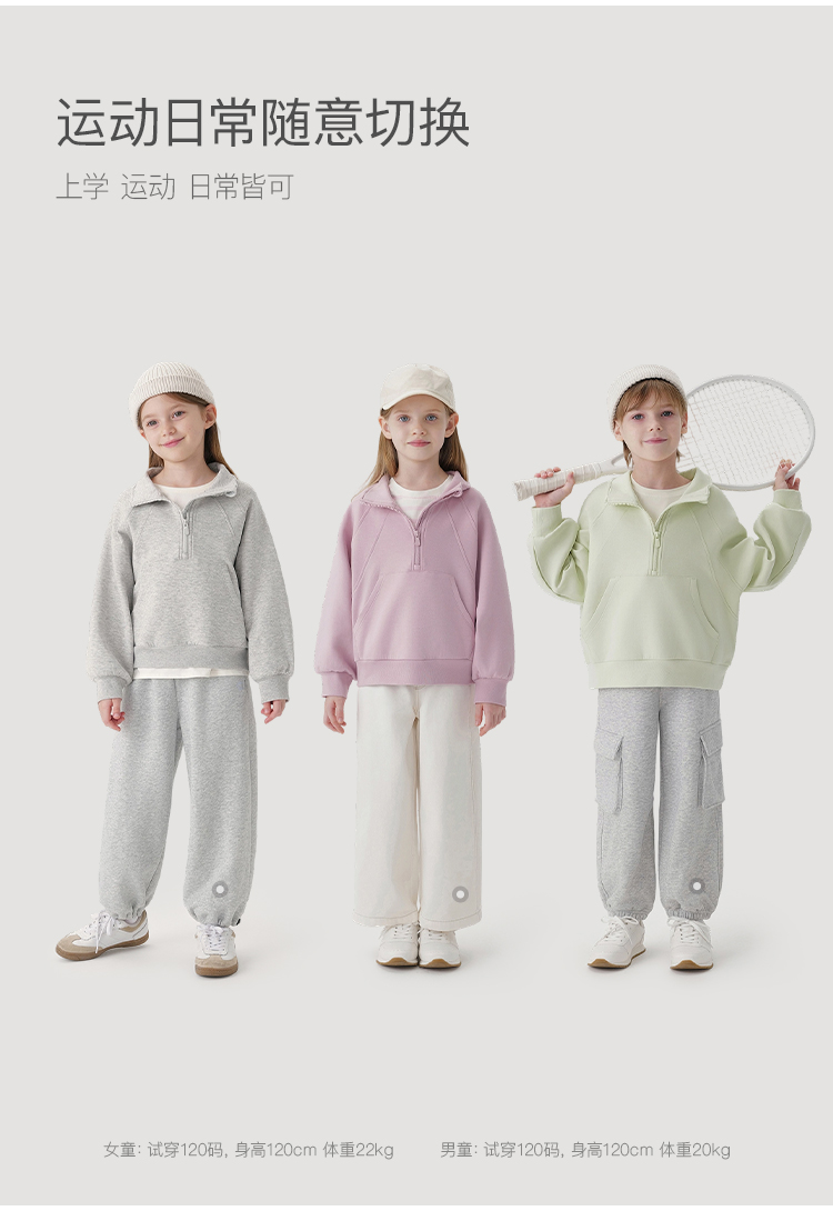 马克珍妮女童半拉链宽松立领运动卫衣儿童上衣2025秋装新款551609