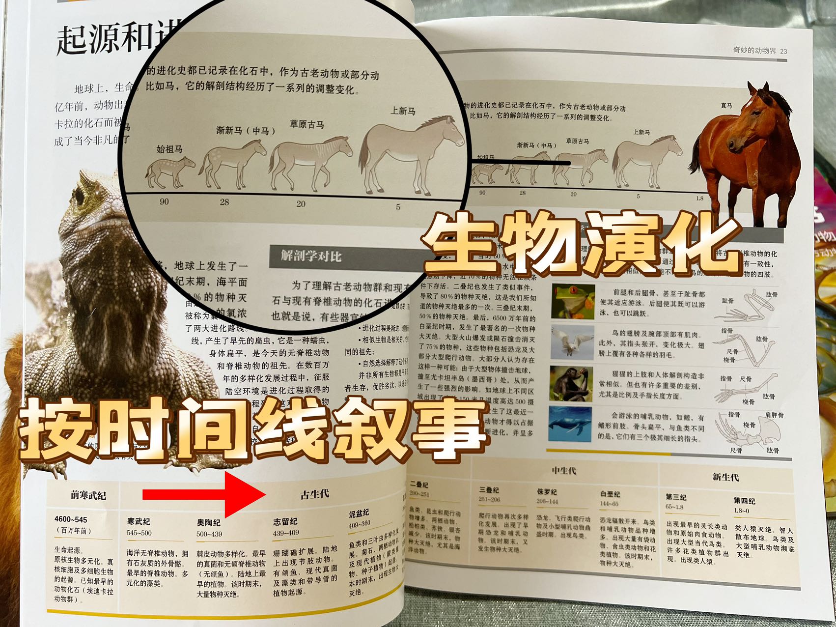 比如以奇妙的动物界为例,前几页的彩图就像是导读,让孩子被大自然的奇妙景象震撼,在强烈的好奇心之下产生各种疑问。