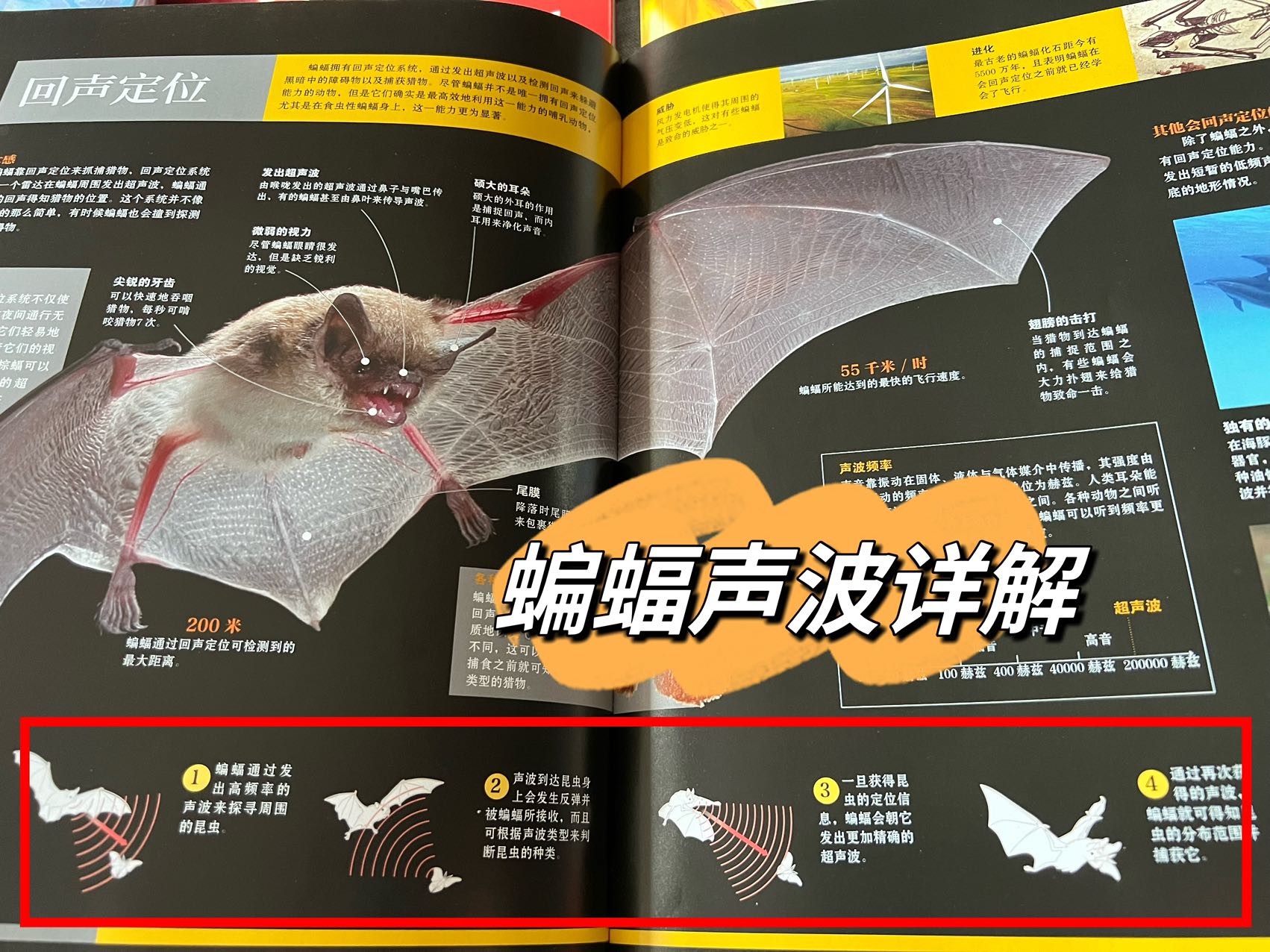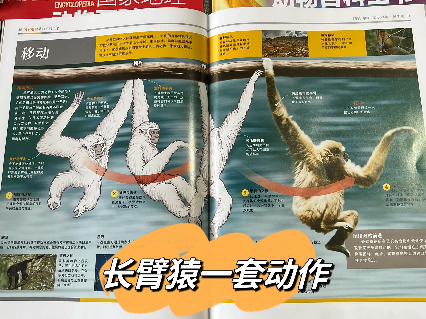 你看灵长动物这本连长臂猿的移动原理都专门画了个步骤图,蝙蝠的超声波也有。