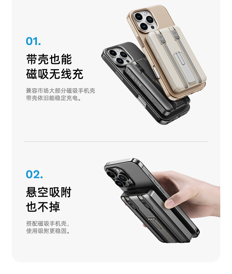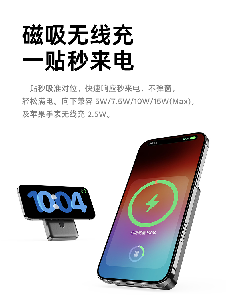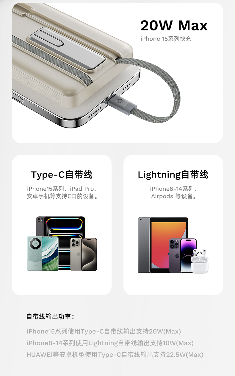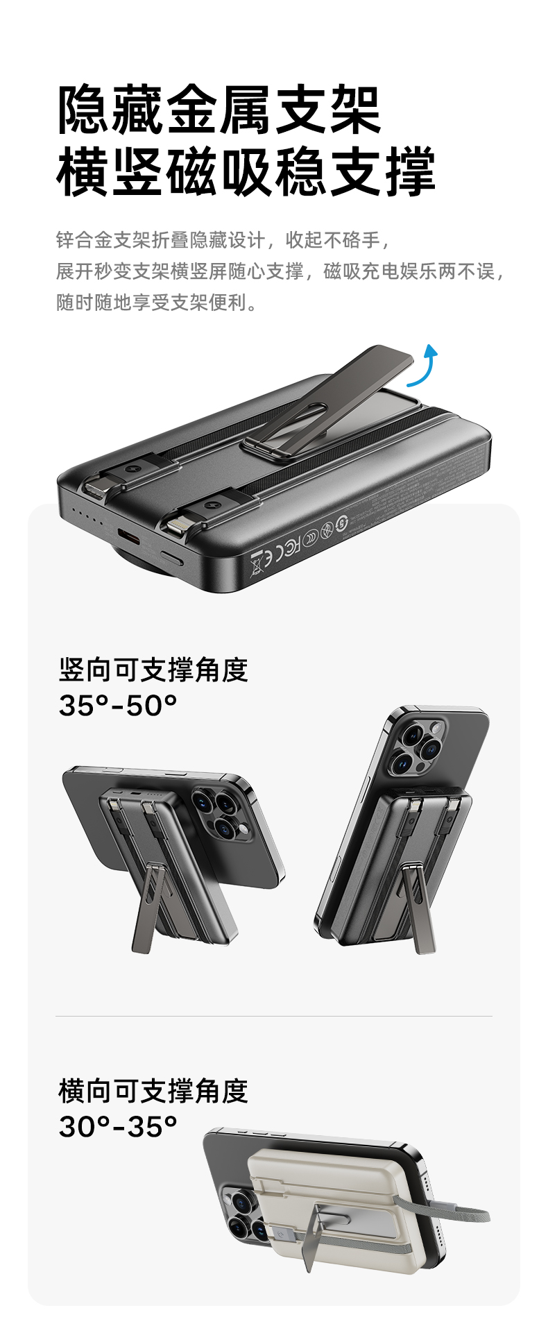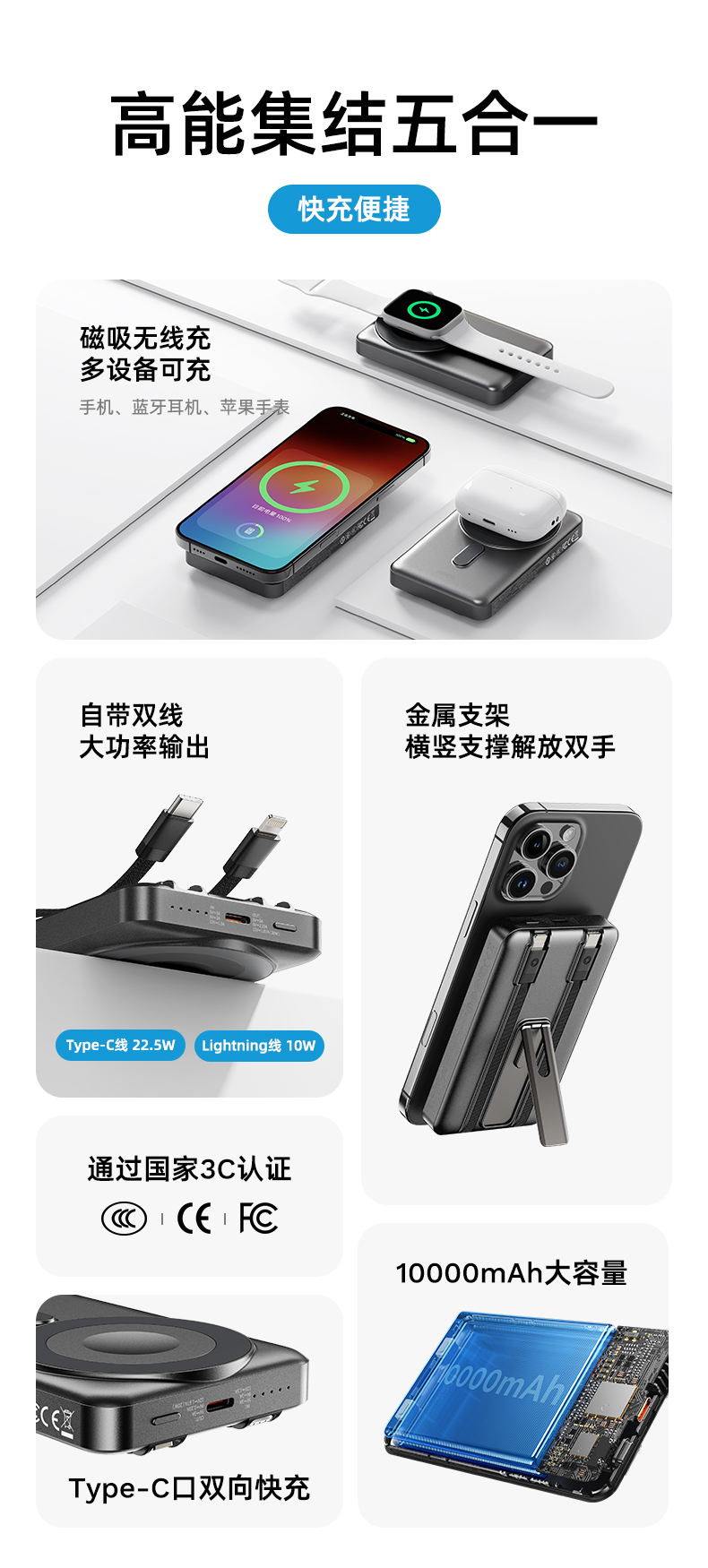 ROCK P50五合一磁吸支架带线PD20W快充移动电源
