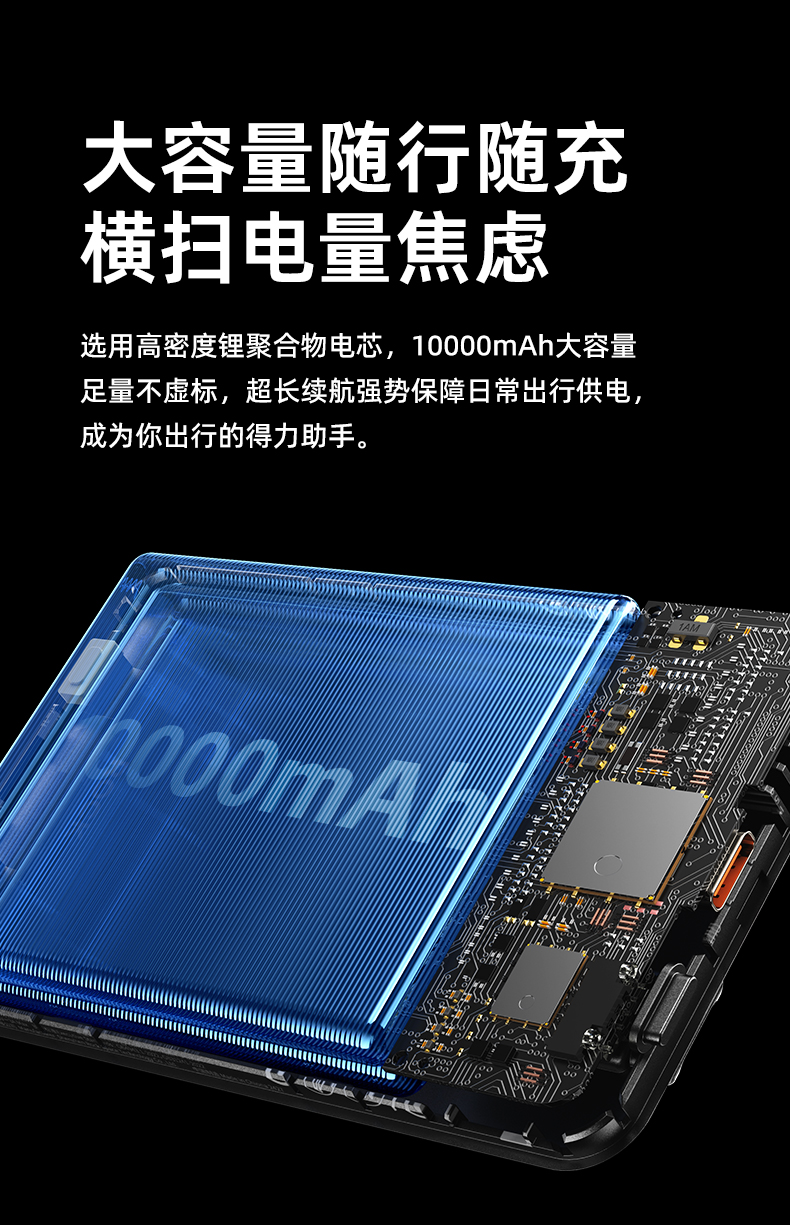 ROCK 自带双线22.5W移动电源10000mah Y30 蓝色