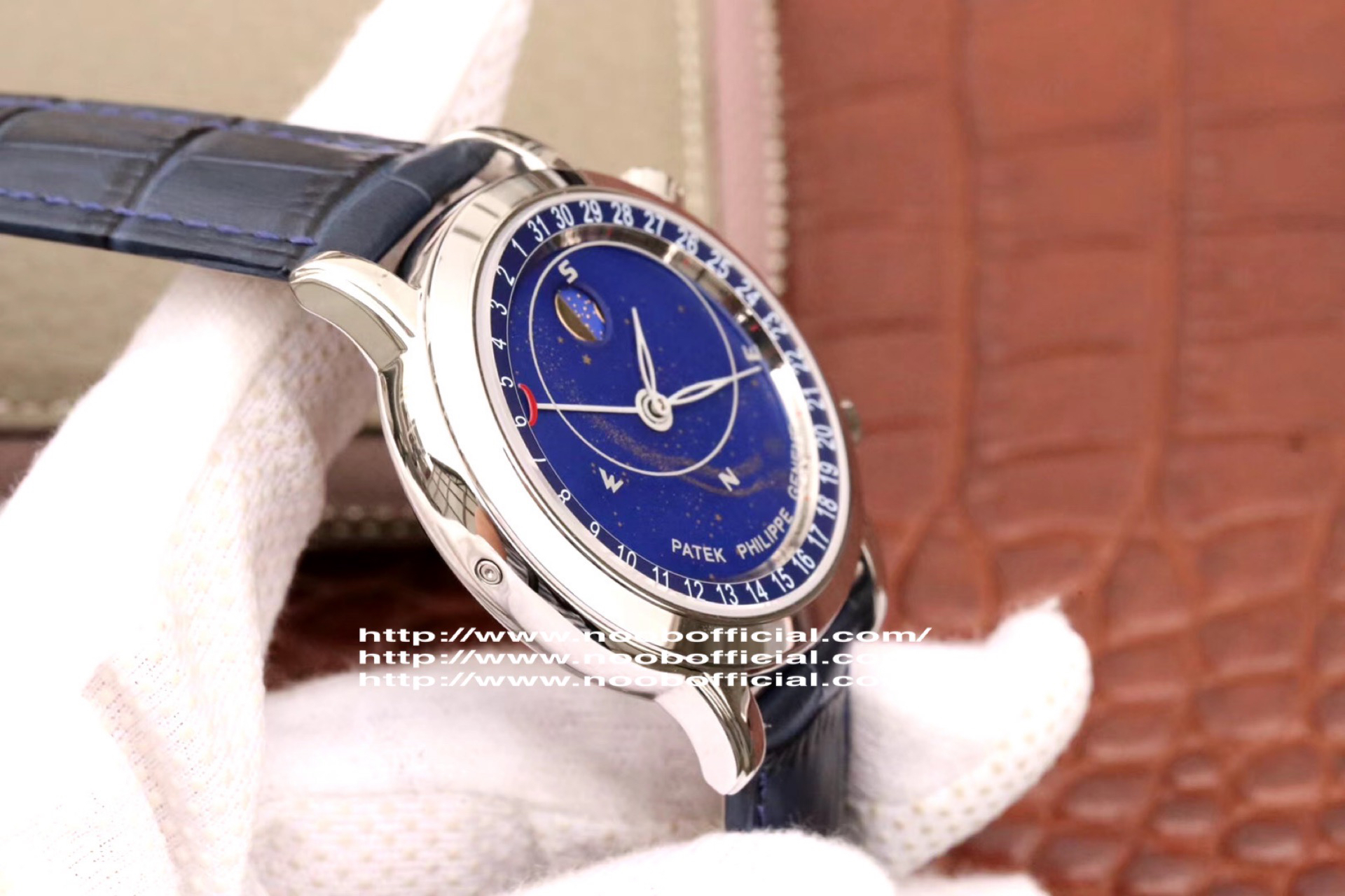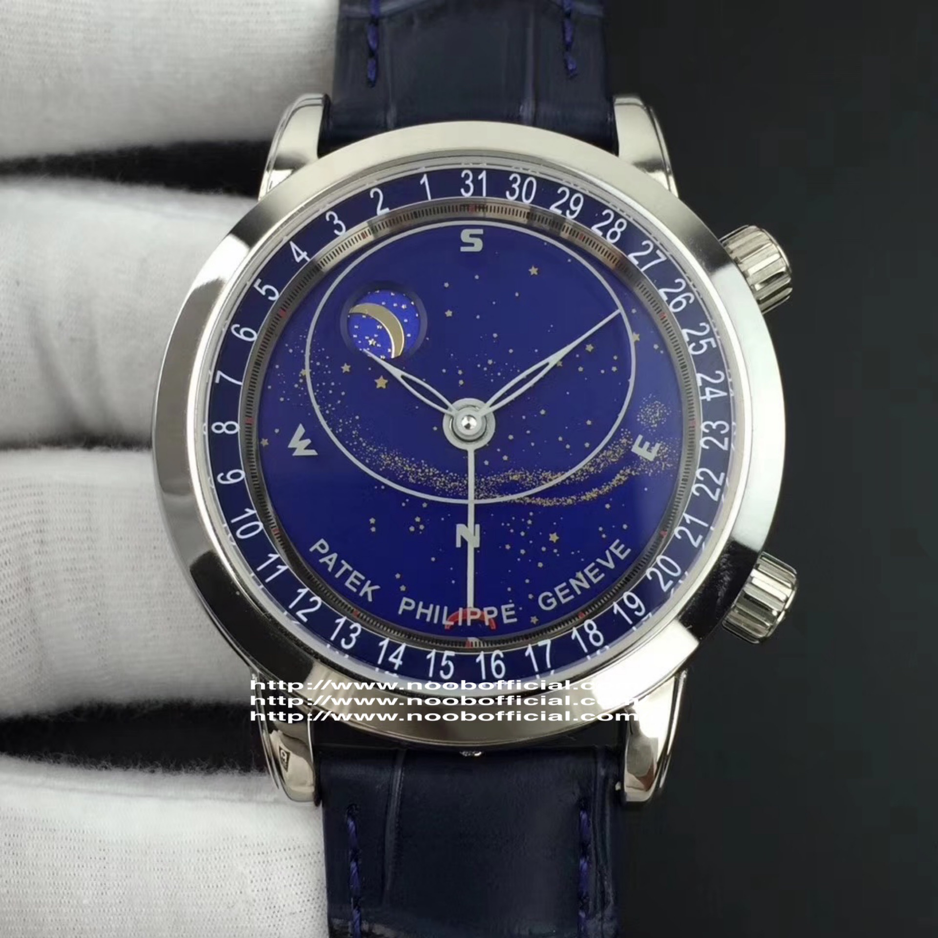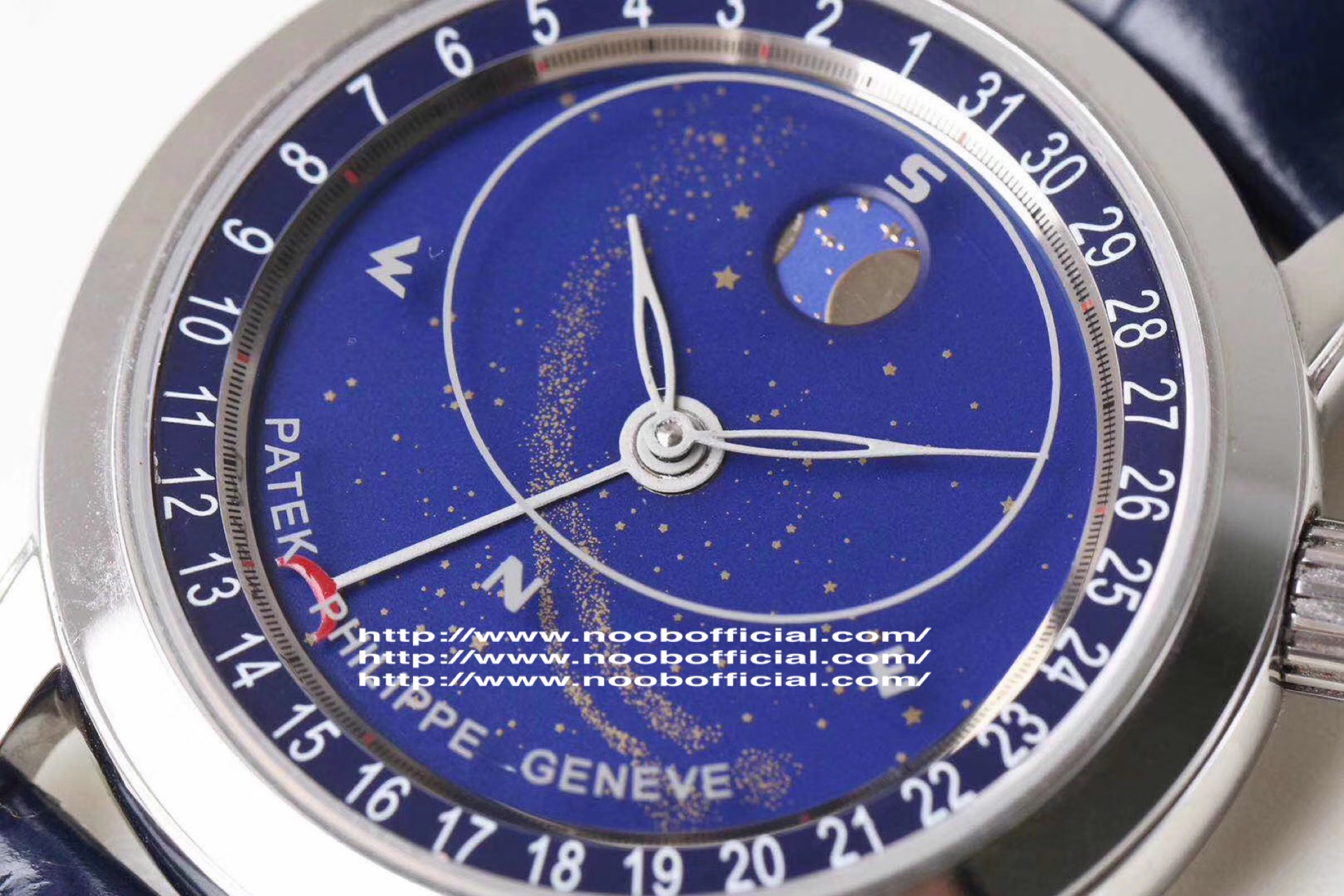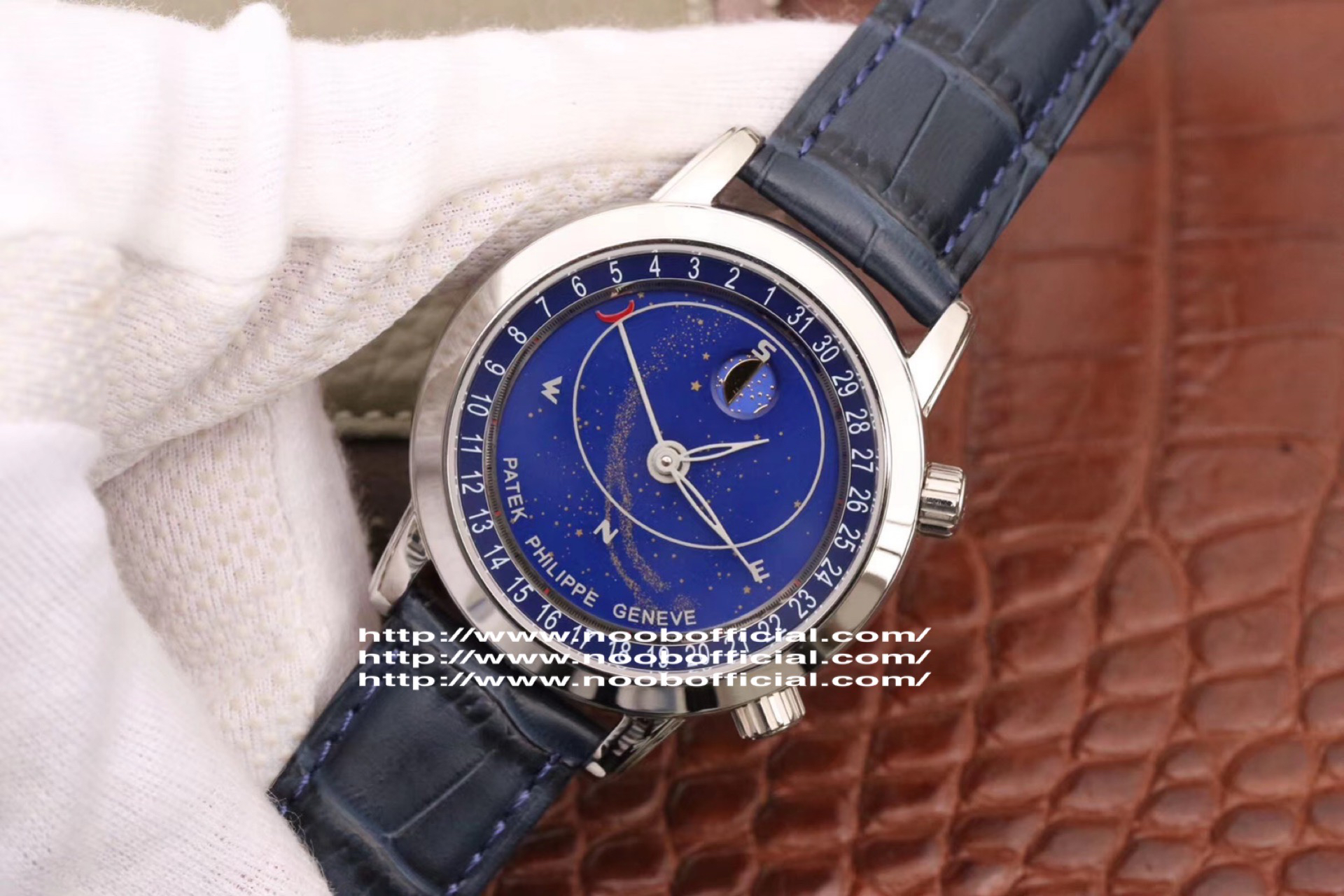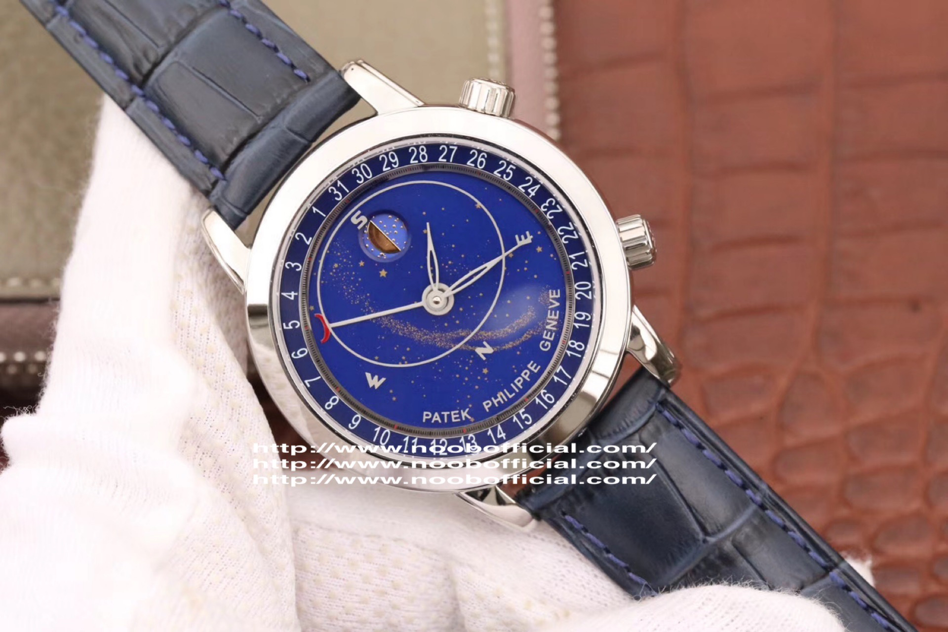 百达翡丽星空升级终极版6102款|6104款超级复杂功能系列。日内瓦苍穹系列你可想象把星空佩戴在腕上吗?这款星空腕表独具特别星象功能,蓝色圆表盘上就能欣赏日内瓦苍穹图,还有金色月球运行轨迹,熬时20个月 采用日本9015改造而成的珍珠陀,和正品一样机心 表盘上的月亮会根据天空的月亮月满圆月蚀弯的情况自动变化 表壳前后玻璃采用先进技术处理让玻璃折射光提高,让表盘看起来更加通透 似乎没有玻璃的感觉 后盖和玻璃也采用和正品一样凹型 打破传统手表后盖和玻璃平行,白光表壳在6字位表壳和表带连接处的宝石采用南非真钻 支持宝石检验,2字把头调时间,日历,月亮盘 5字位把头调星空盘转动。此表在手别无所求。