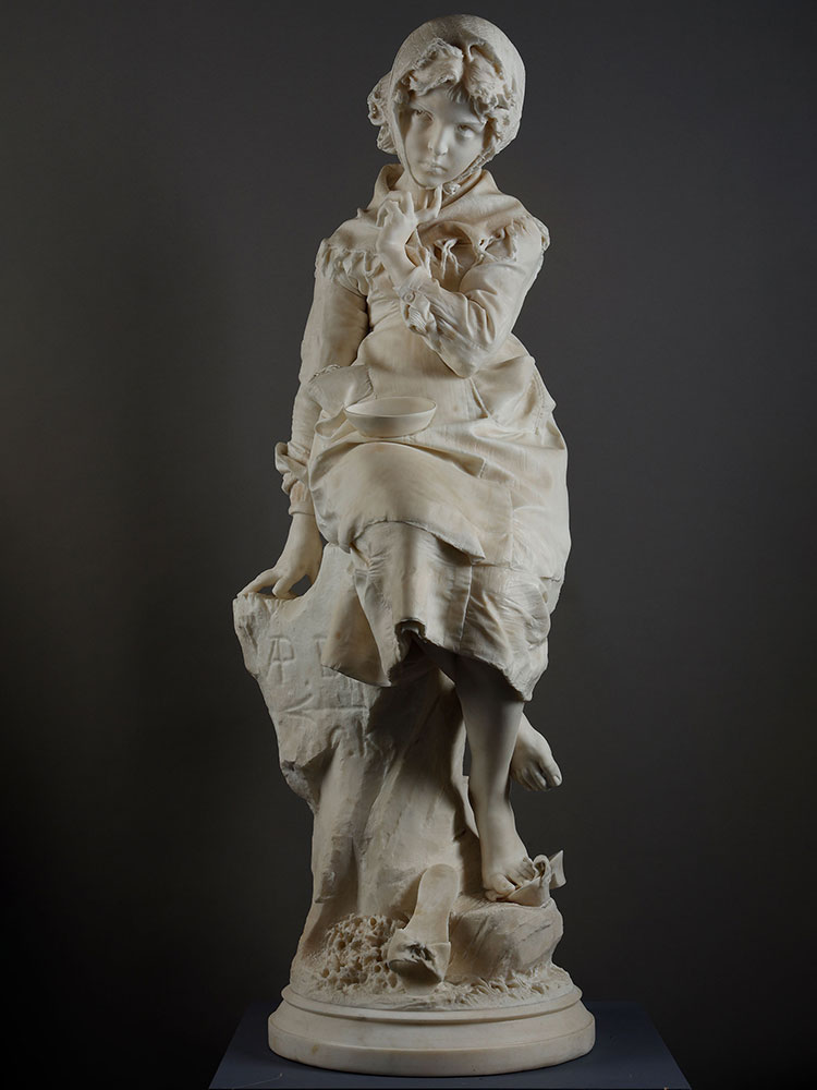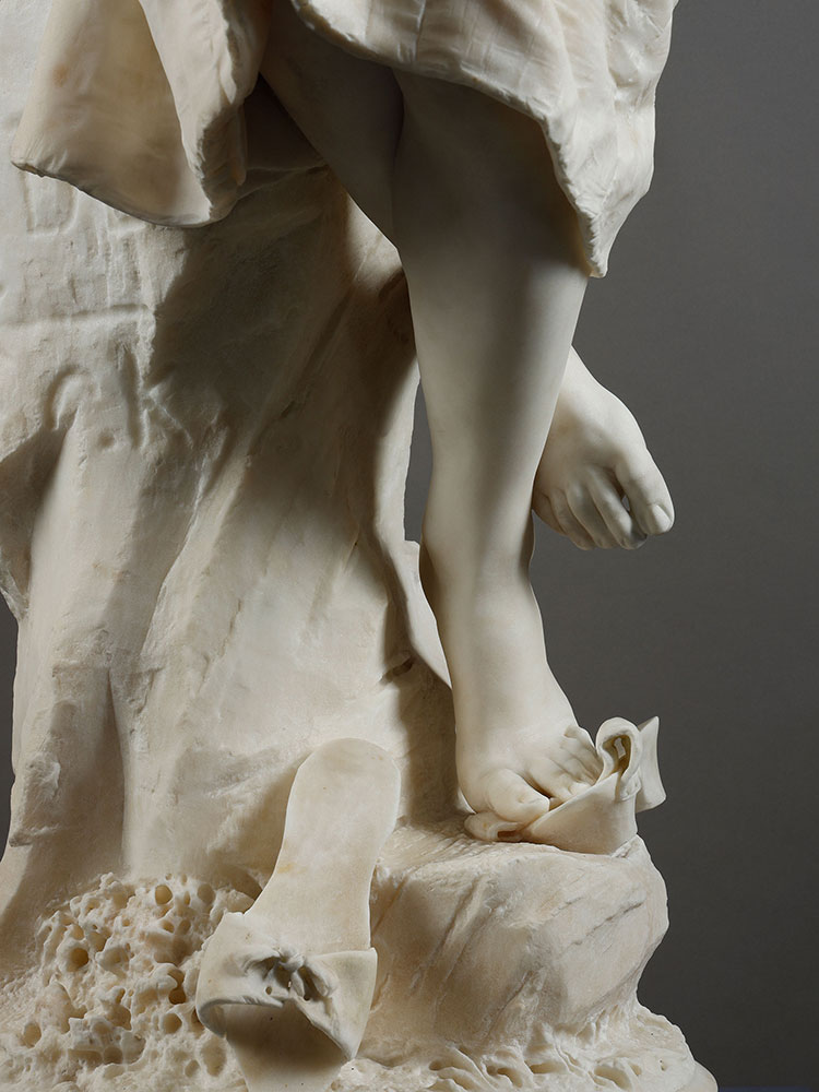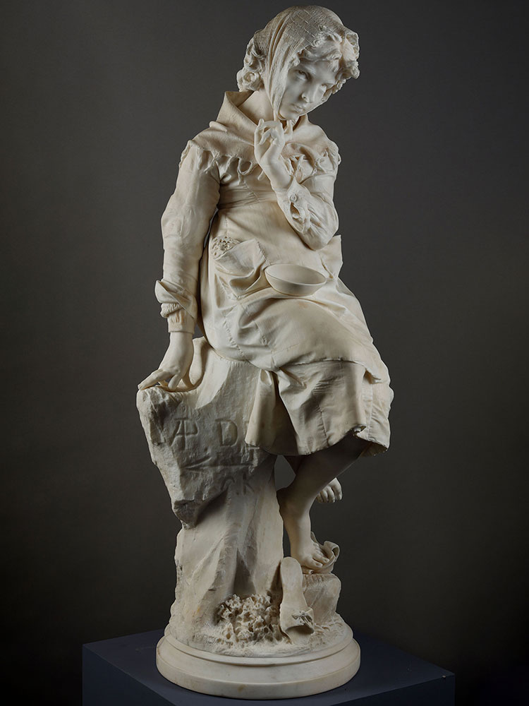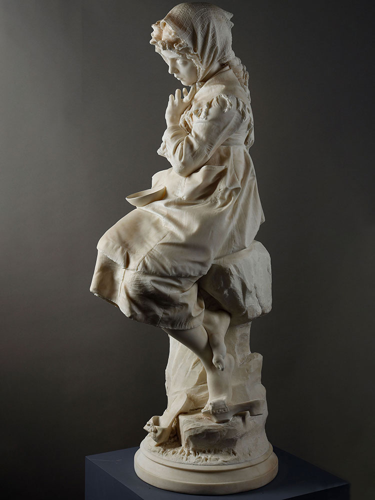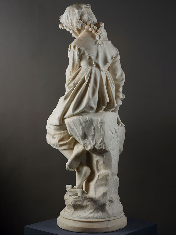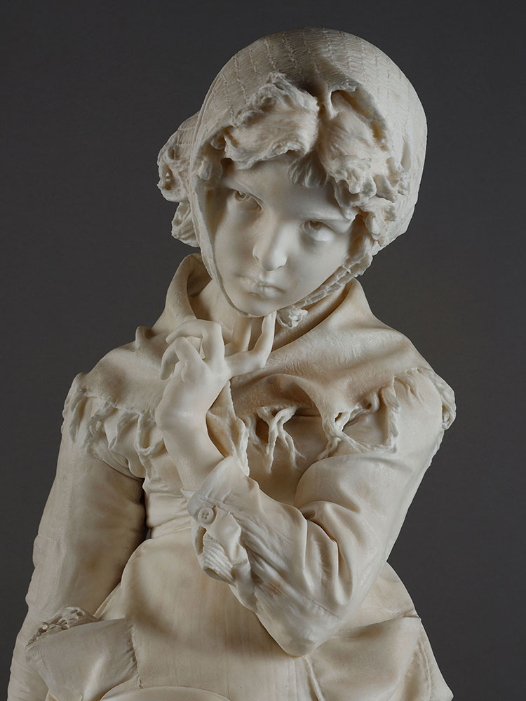 1881年代意大利雕塑大师Enrico Butti签名创作《沉思的少女》大理石雕塑