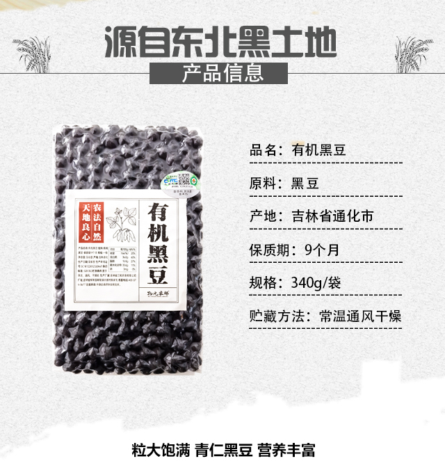 【包邮】【有机黑豆】 甄选有机可发芽 颗粒饱满圆润 皮薄沙糯肉厚 口感清甜 340g/包