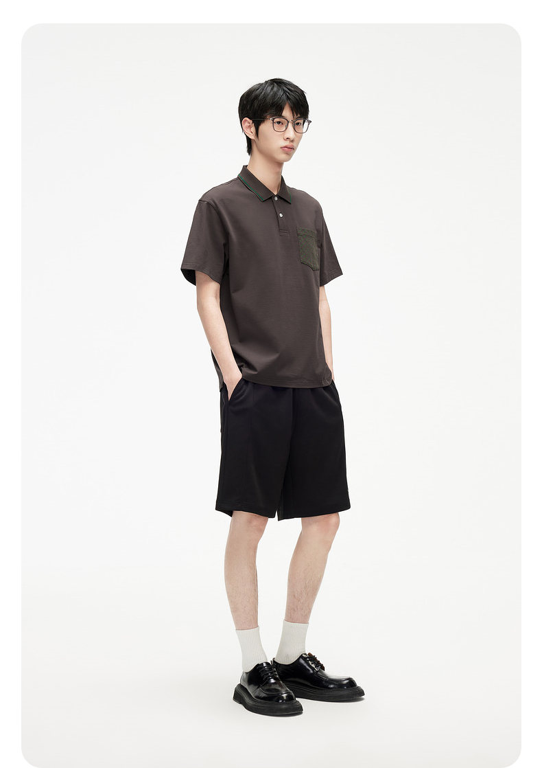 GXG男装 针织休闲五分裤简约刺绣小标通勤短裤男裤 2025春季热卖
