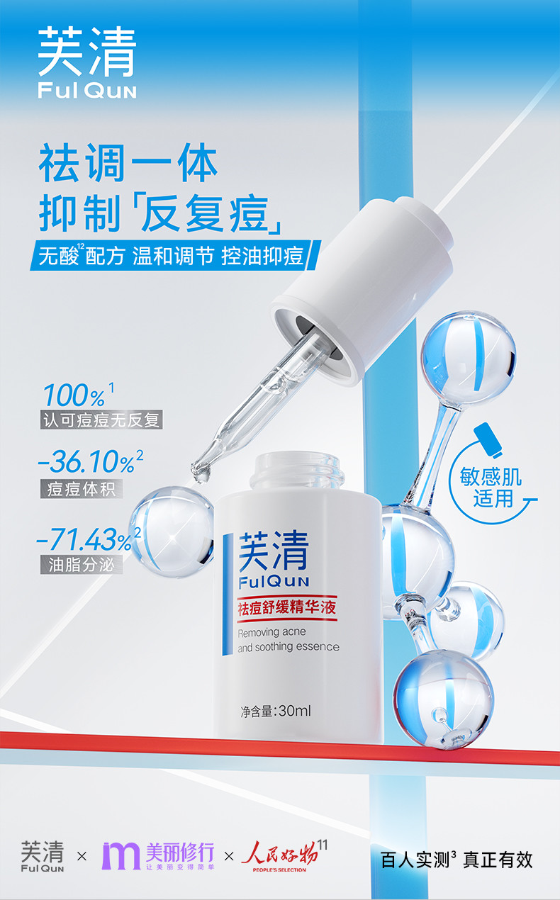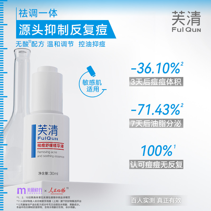芙清祛痘精华 30ml 控油保湿淡化痘印改善泛红修护 无酸清痘舒缓精华液