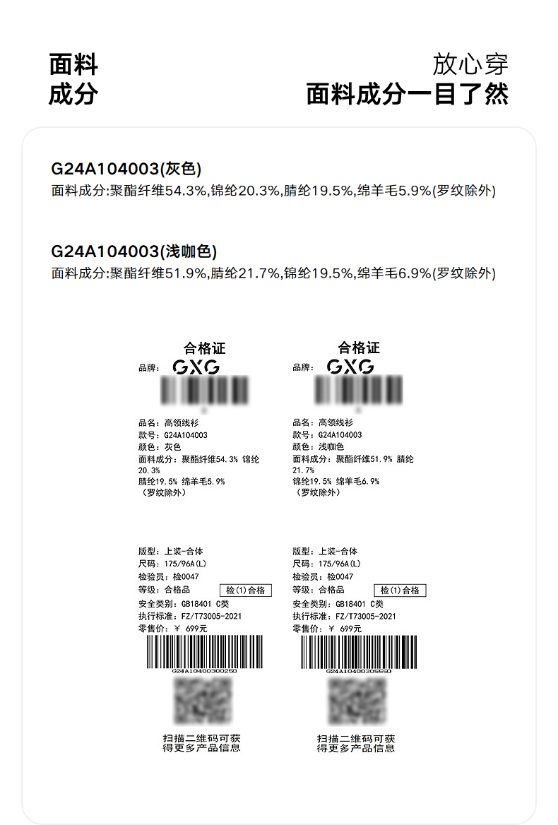 GXG男装 高领基础保暖毛衫双色通勤内搭针织衫 2024冬季热卖