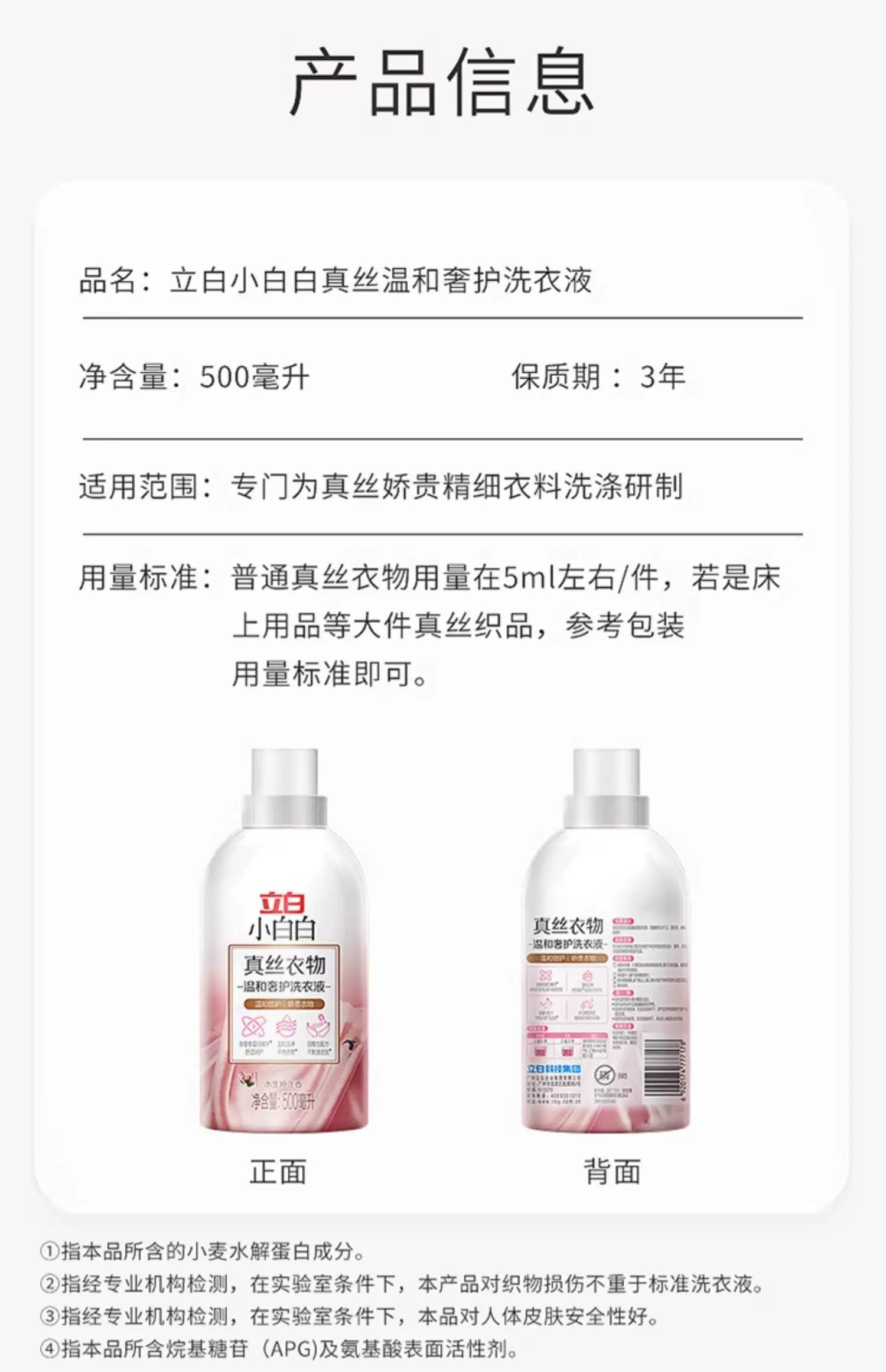 立白小白白真丝洗衣液 丝绸桑蚕丝专用