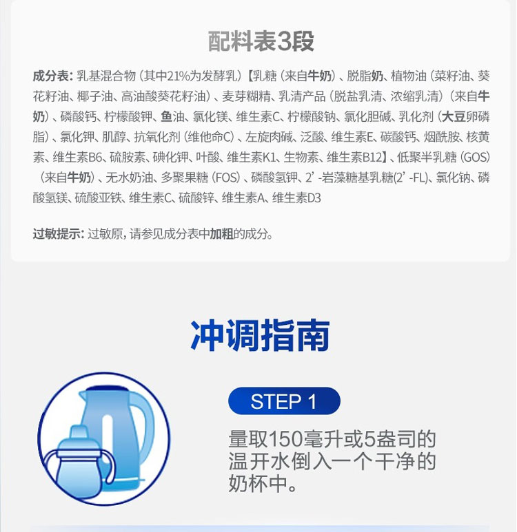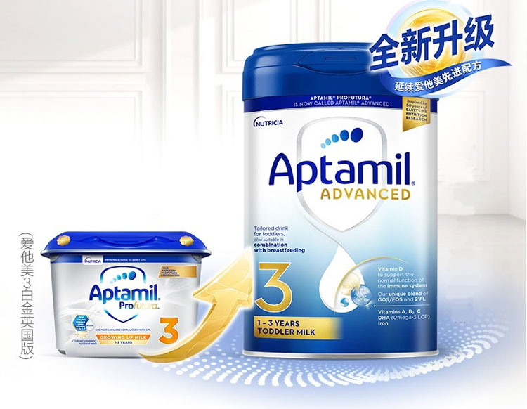 【品牌直供】英国Aptamil爱他美白金版婴儿配方奶粉 3段1-3周岁 800g新版