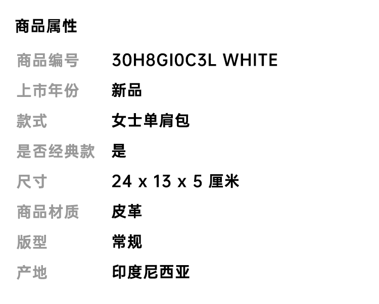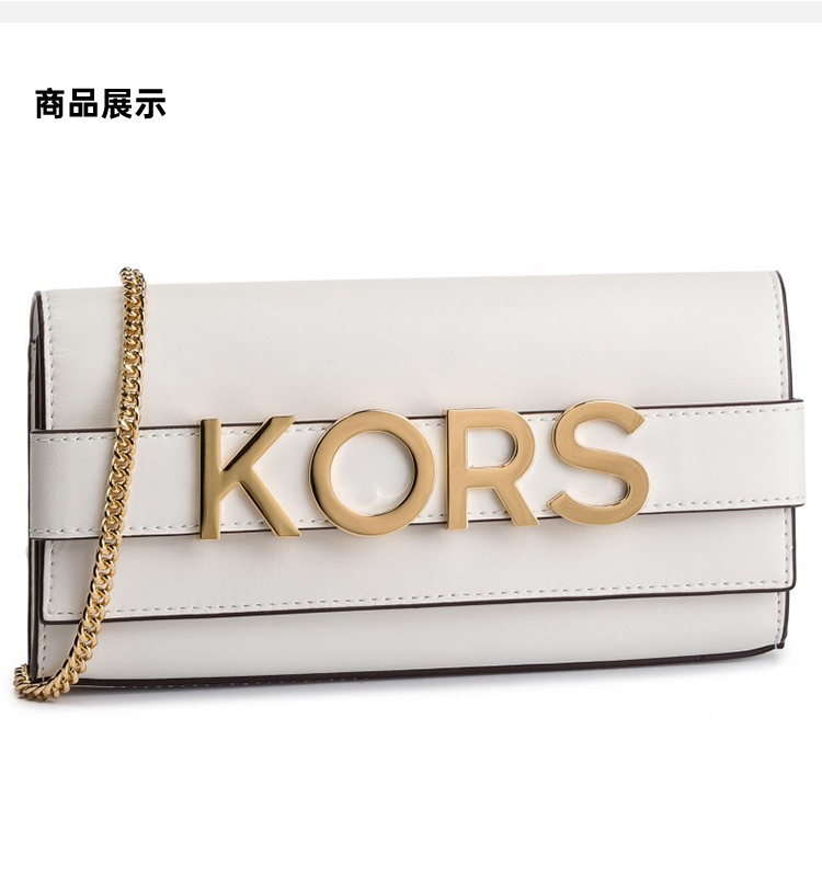MICHAEL KORS 迈克 科尔斯 MK 女士 BELLAMIE系列 纯牛皮金属字母徽标手拿单肩斜挎包 白色 30H8GI0C3L WHITE