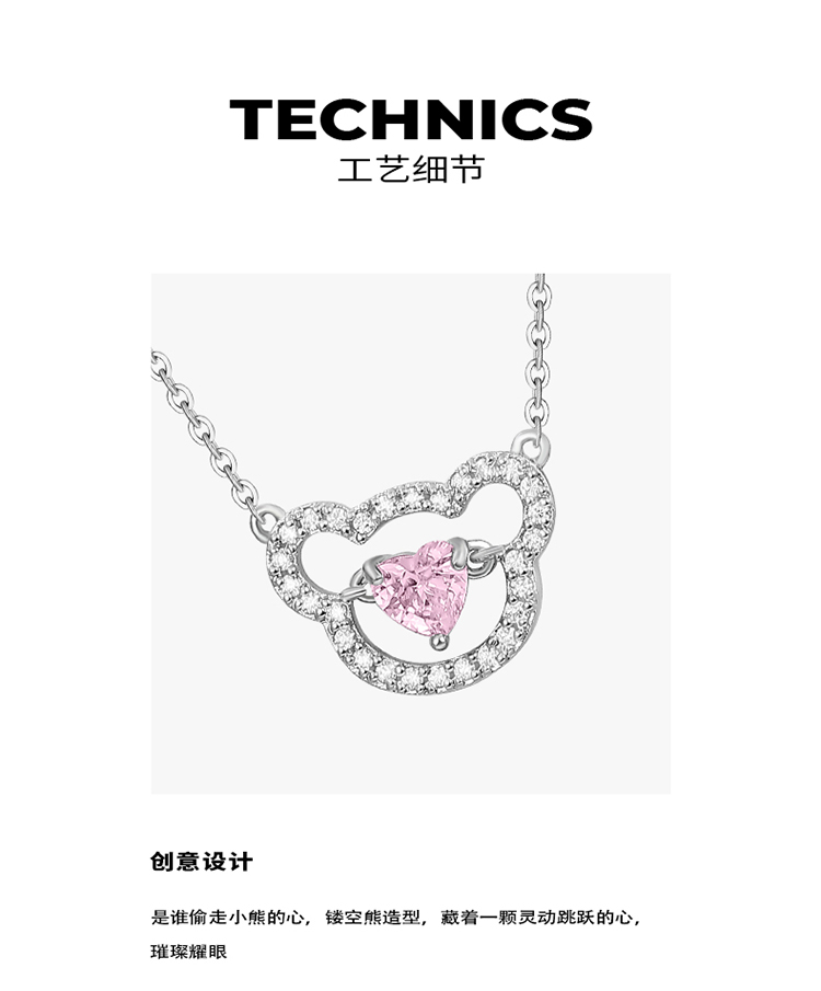 ZEGL设计师925纯银小熊项链女高级设计感轻奢小众锁骨毛衣链配饰
