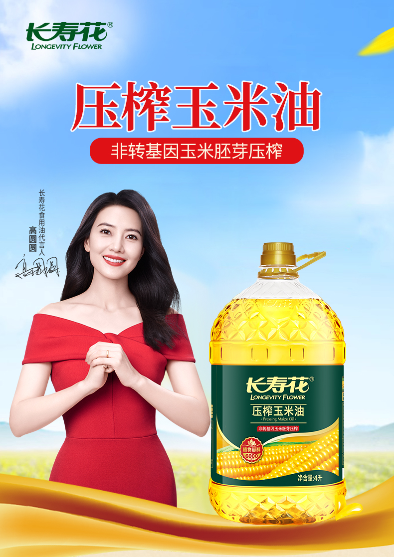 长寿花压榨玉米油4L*1桶非转基因物理压榨一级充氮保鲜烘焙食用植物油