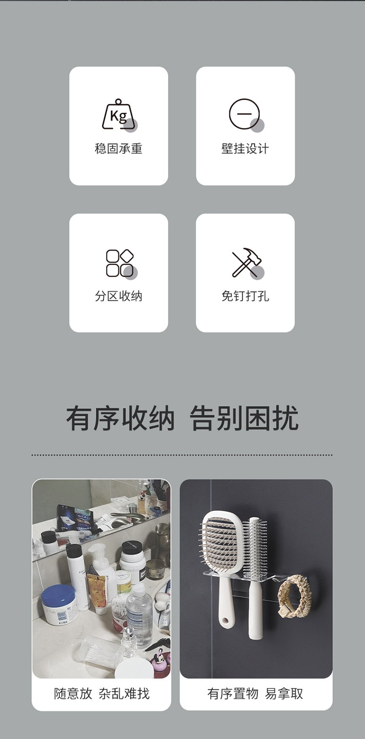 FaSoLa卫生间置物架浴室架子免打孔洗漱台厕所墙上壁挂化妆品收纳架神器